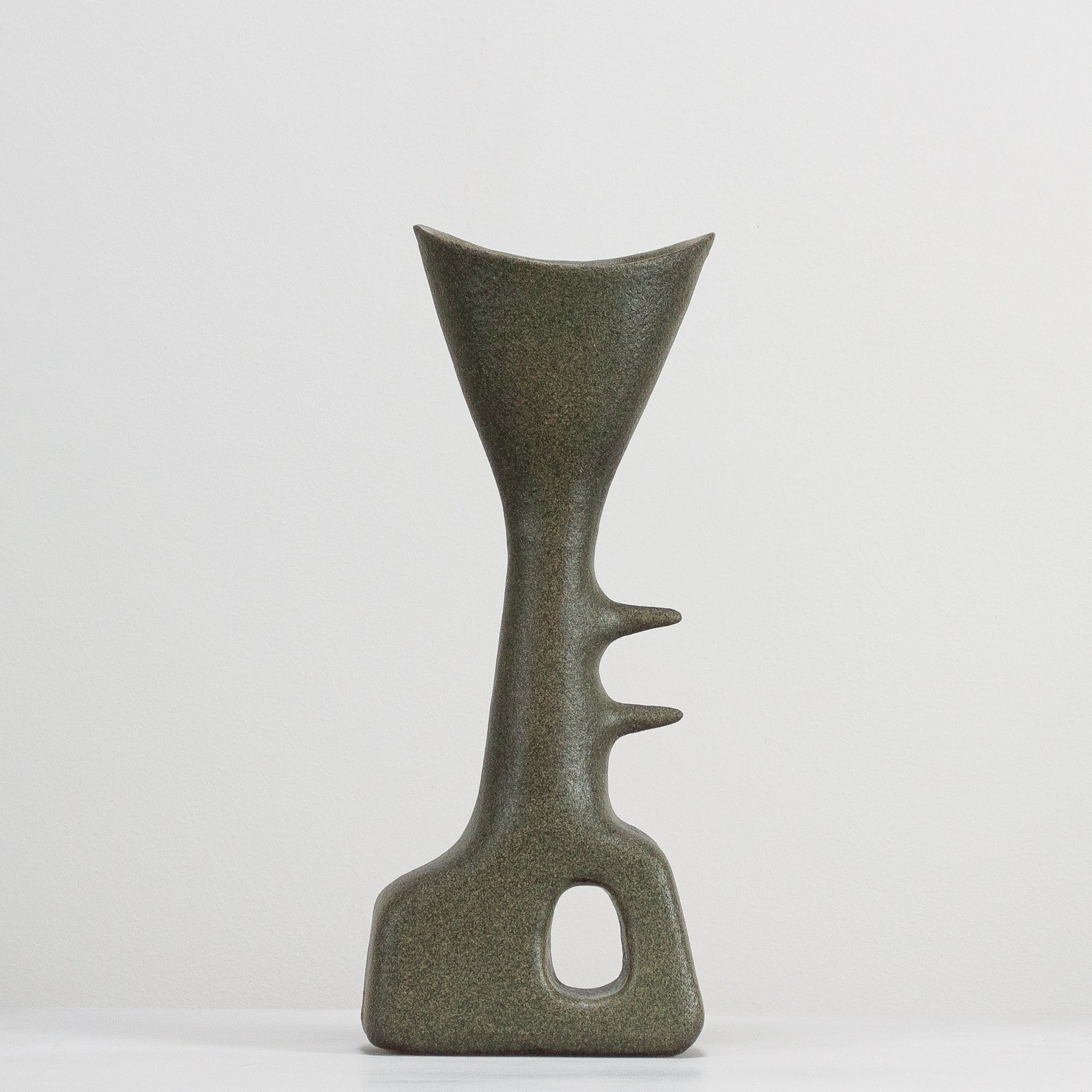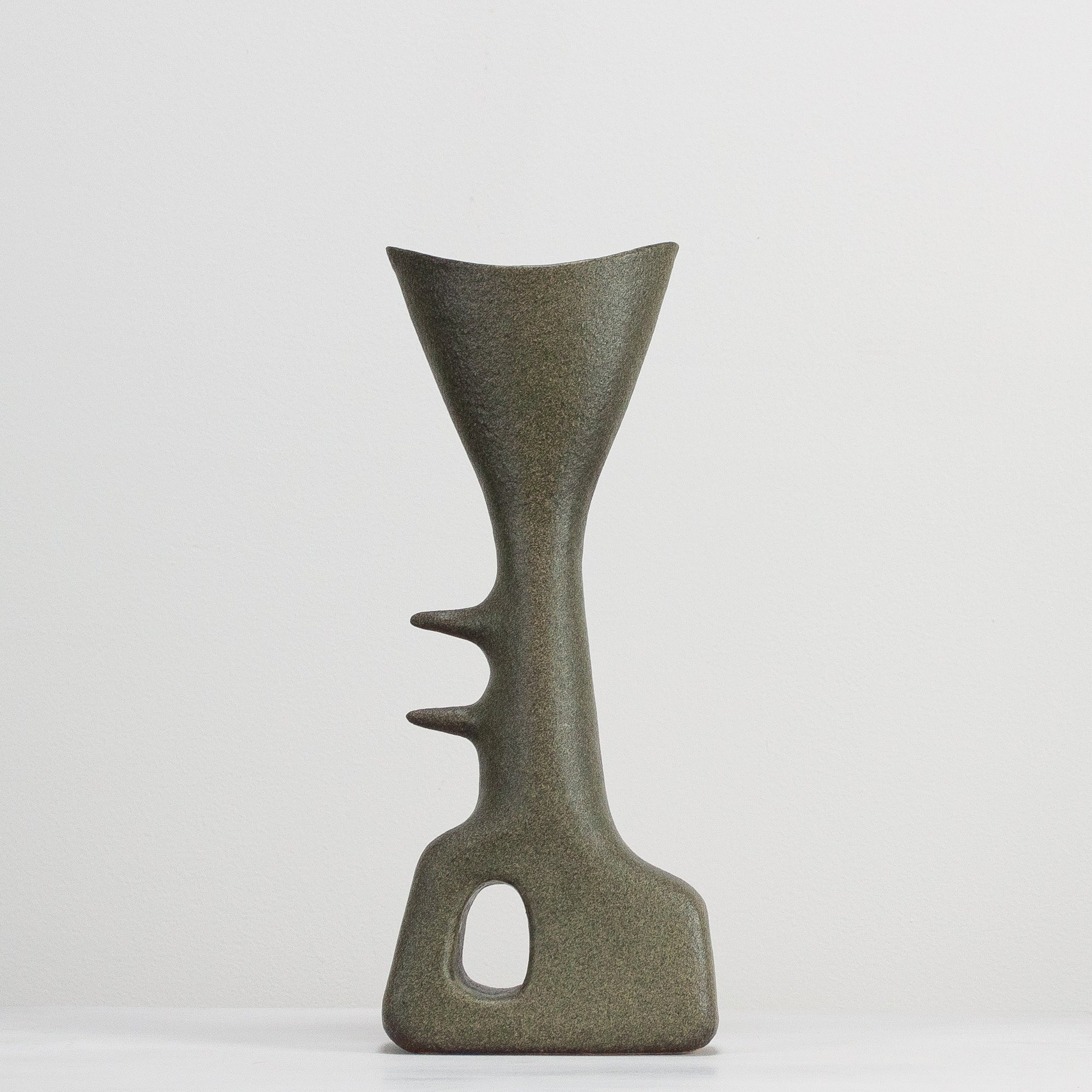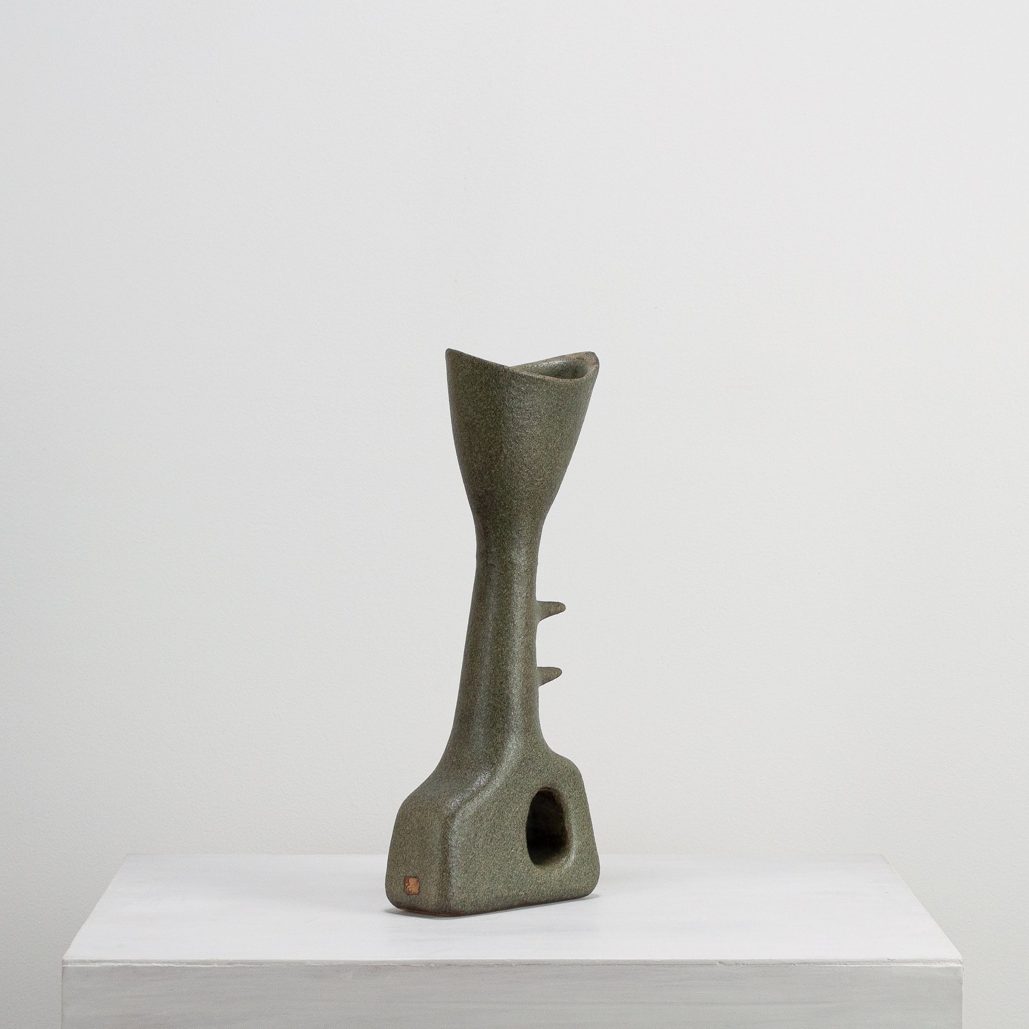 Stoneware sculptural vessel with a satin matt glaze. Suitable for use as a vase.