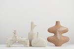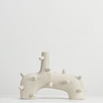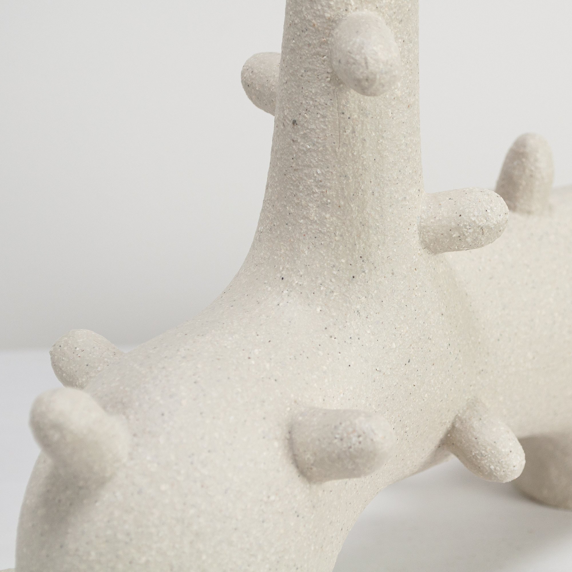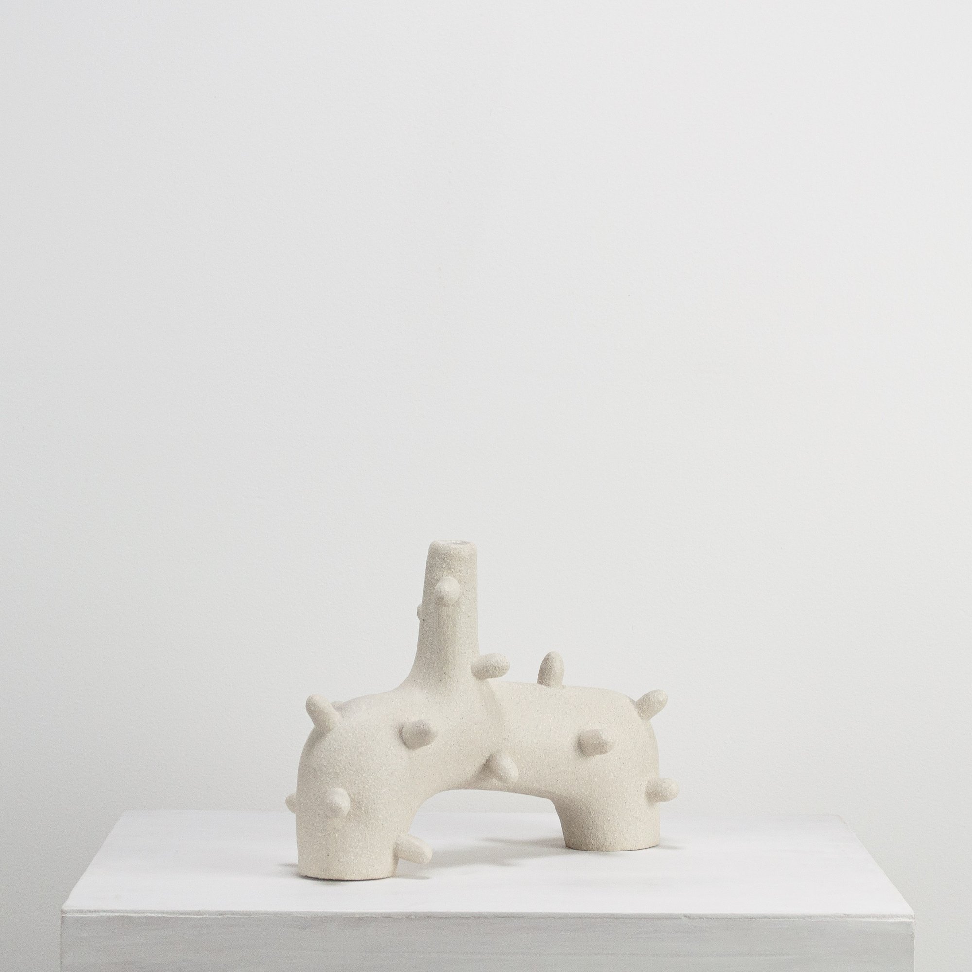 Unglazed stoneware sculptural vessel with a warm white, stoney finish. Sculptural vessel, suitable as a vase.