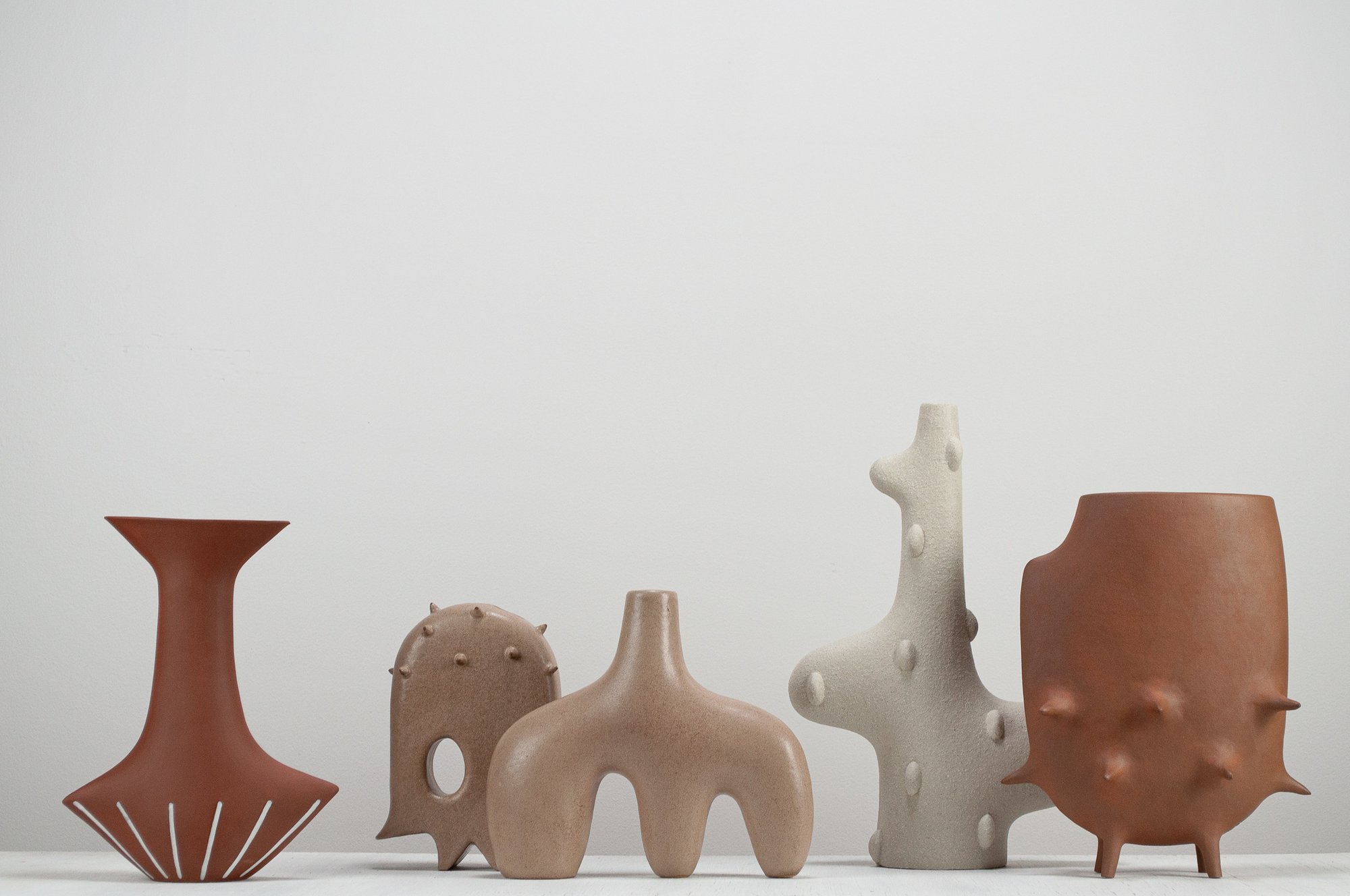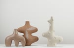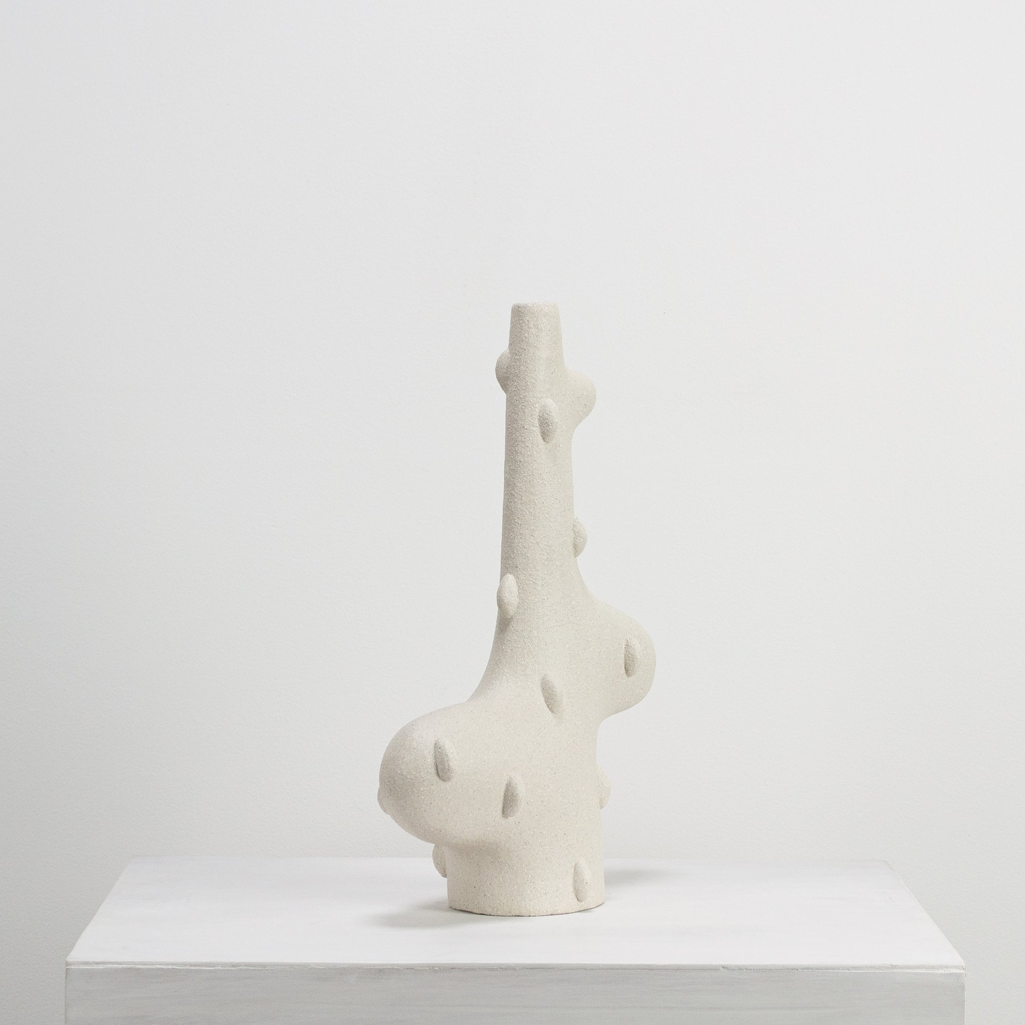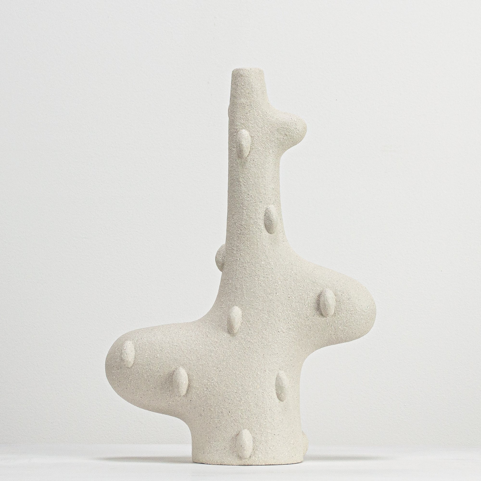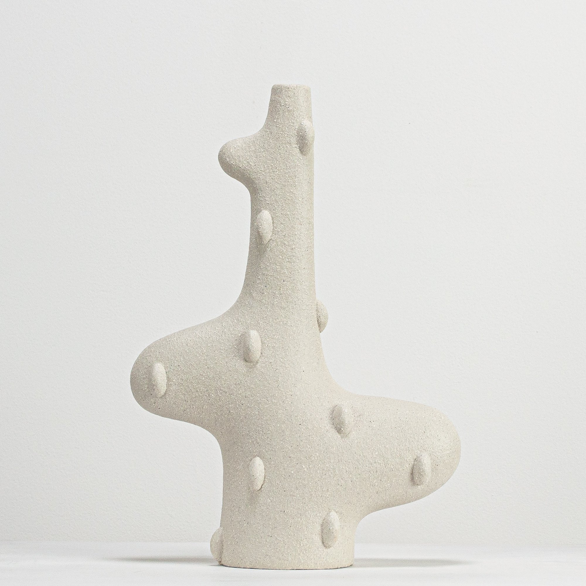 Unglazed stoneware sculptural vessel with a warm white, stoney finish. Sculptural vessel, suitable as a vase.