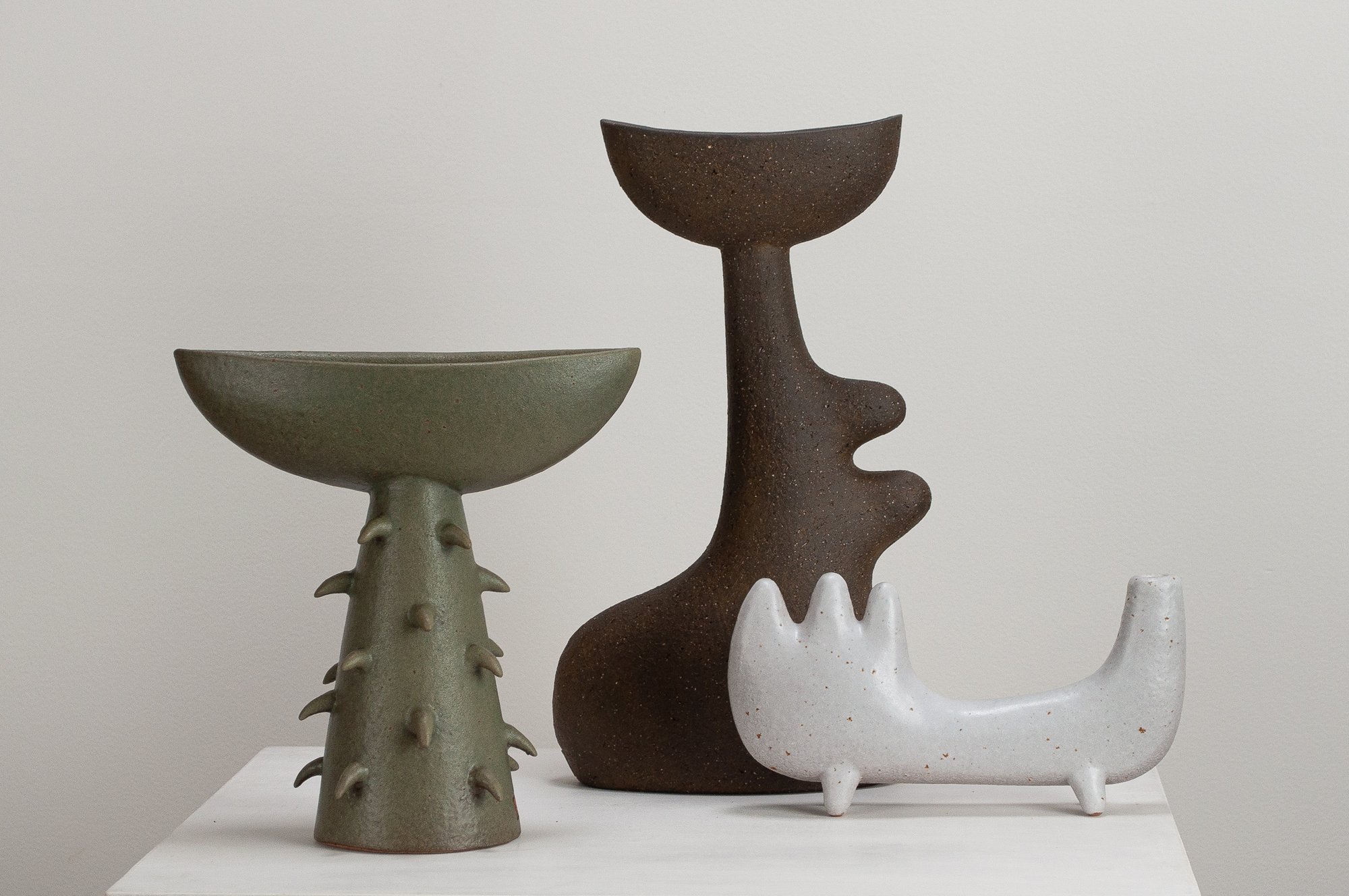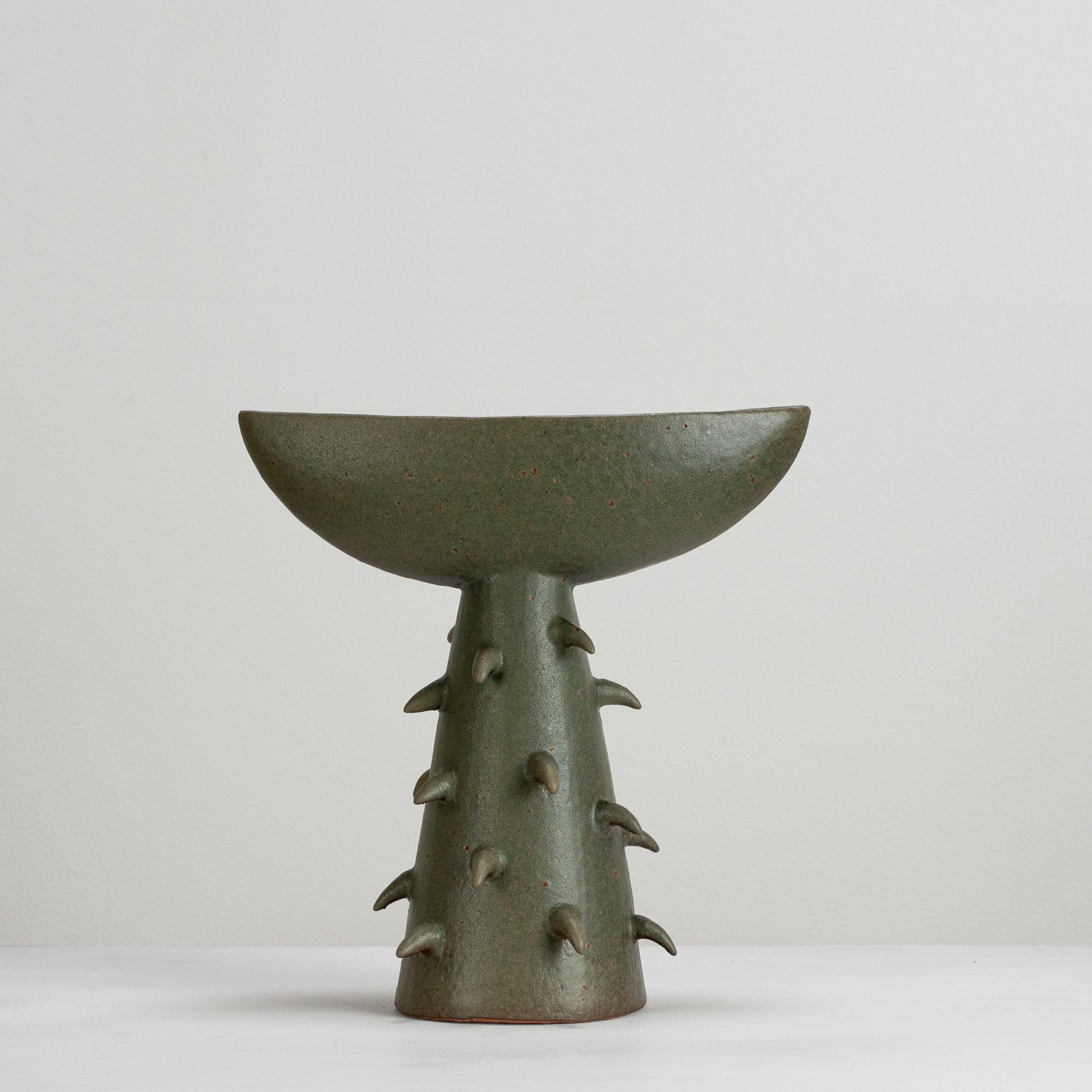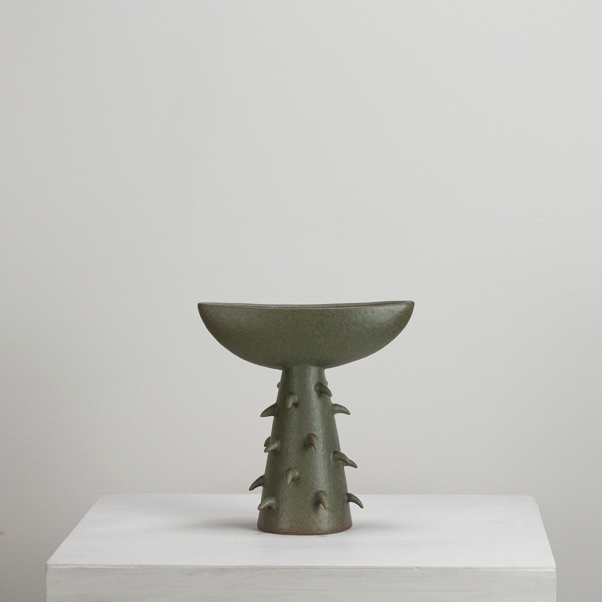 Stoneware sculptural vessel in a satin matt glaze. Suitable for use as a vase.