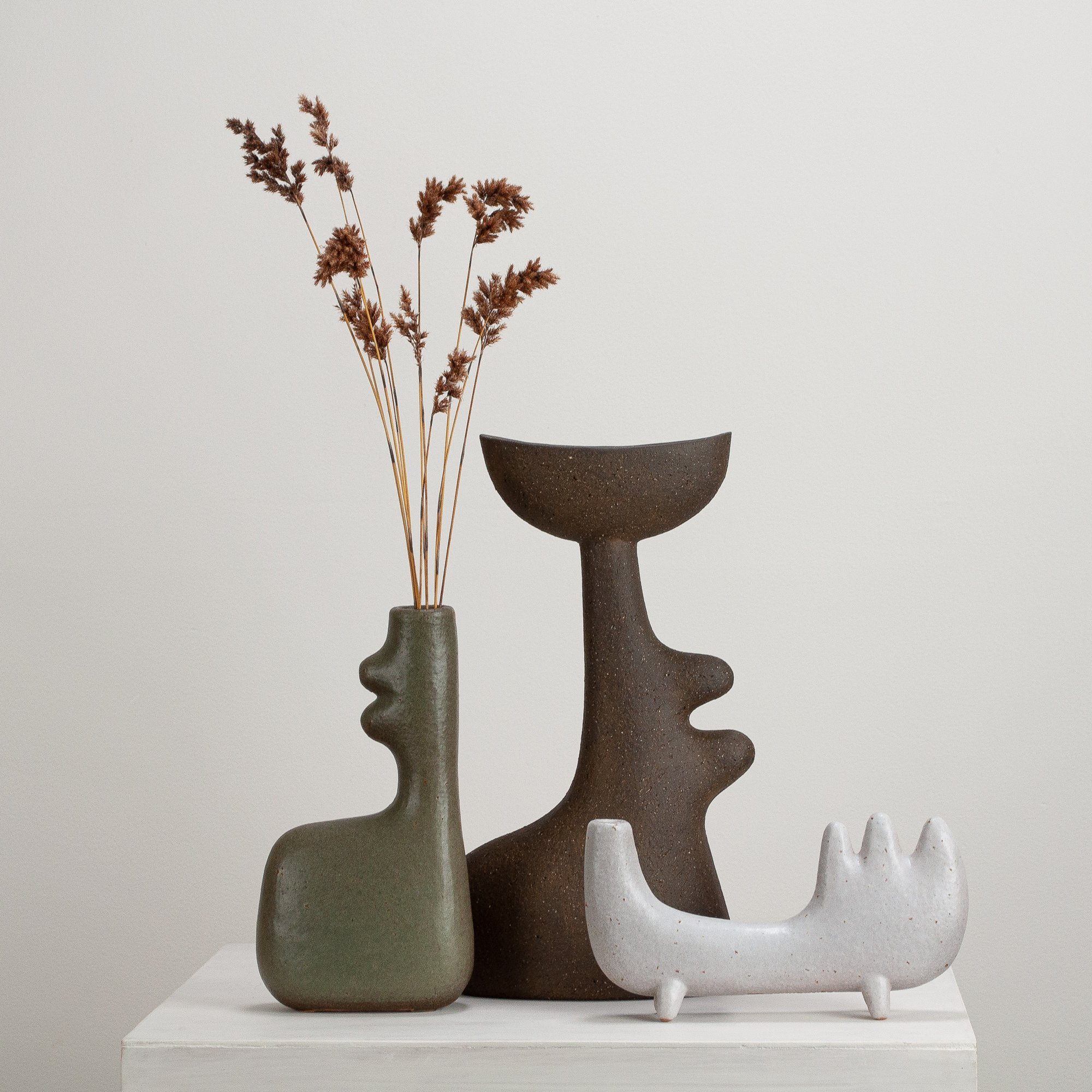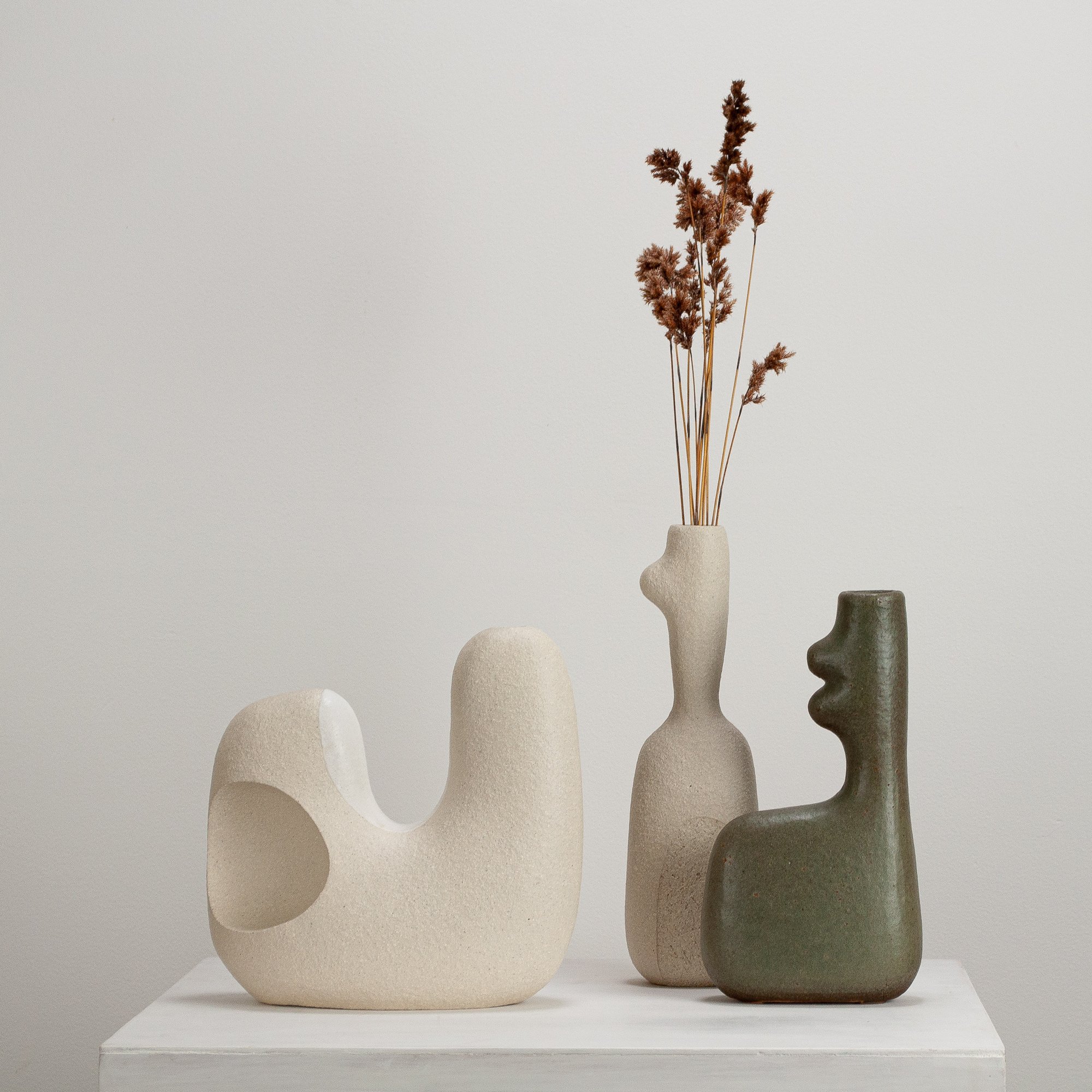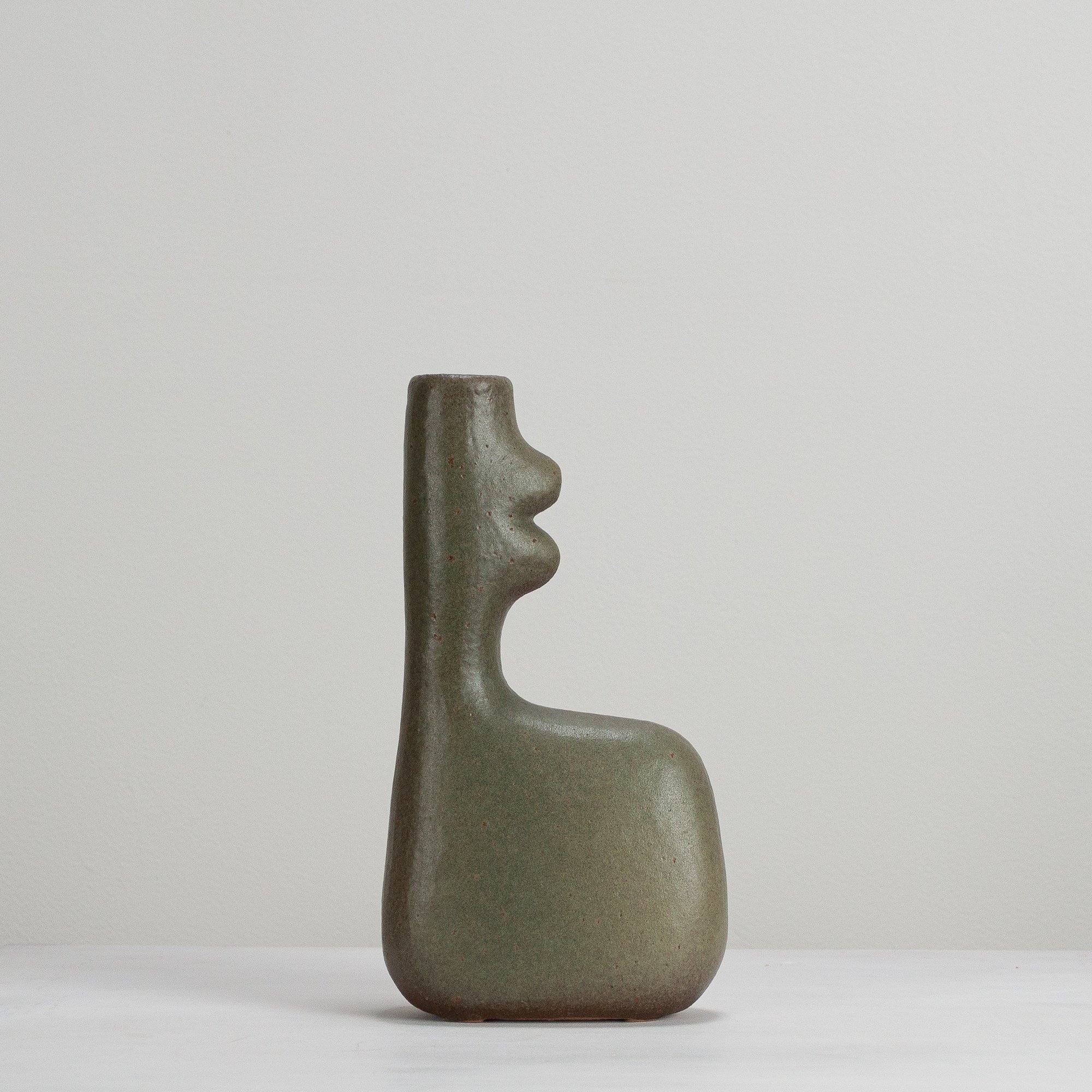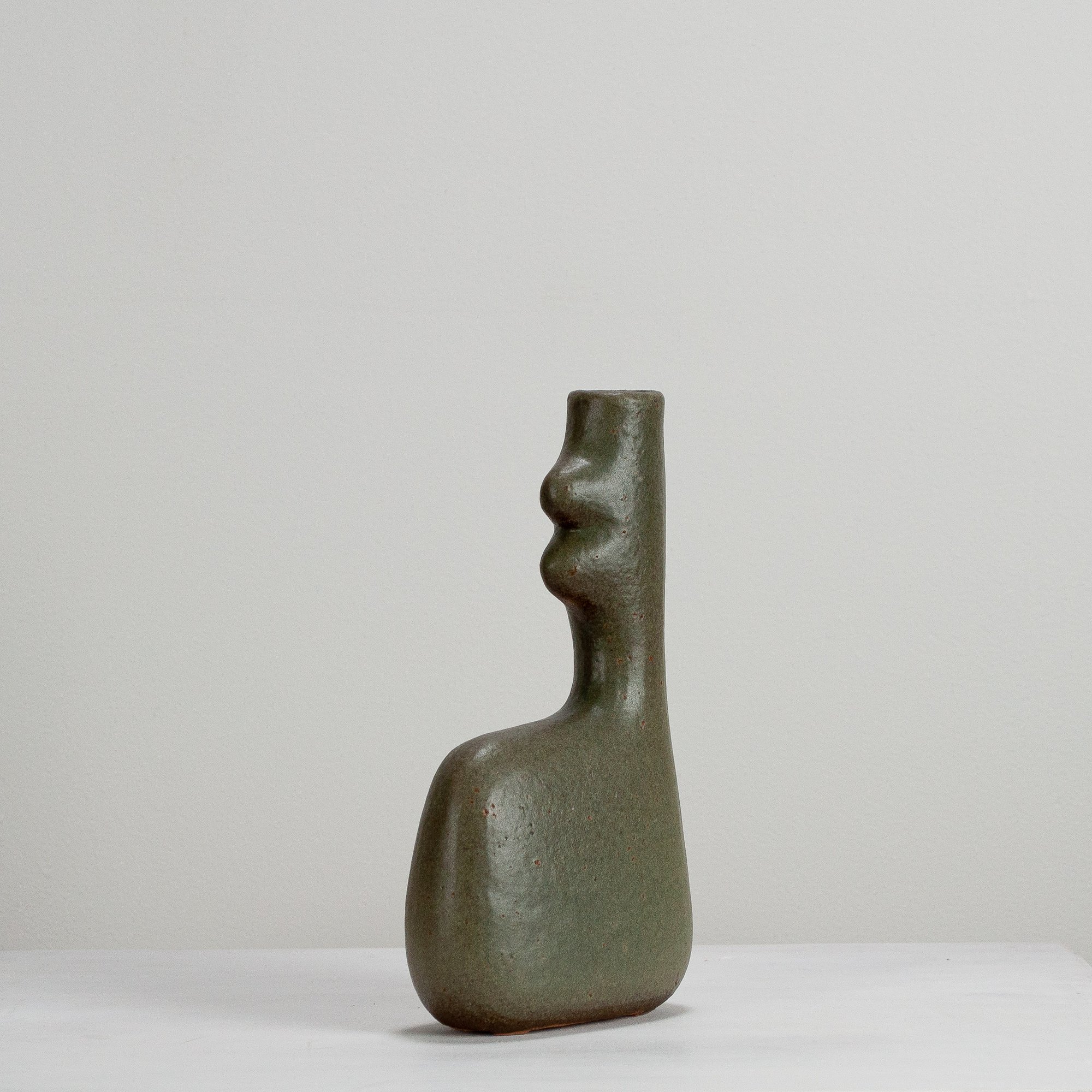 Stoneware sculptural vessel with a satin matte glaze. Suitable for use as a vase.
