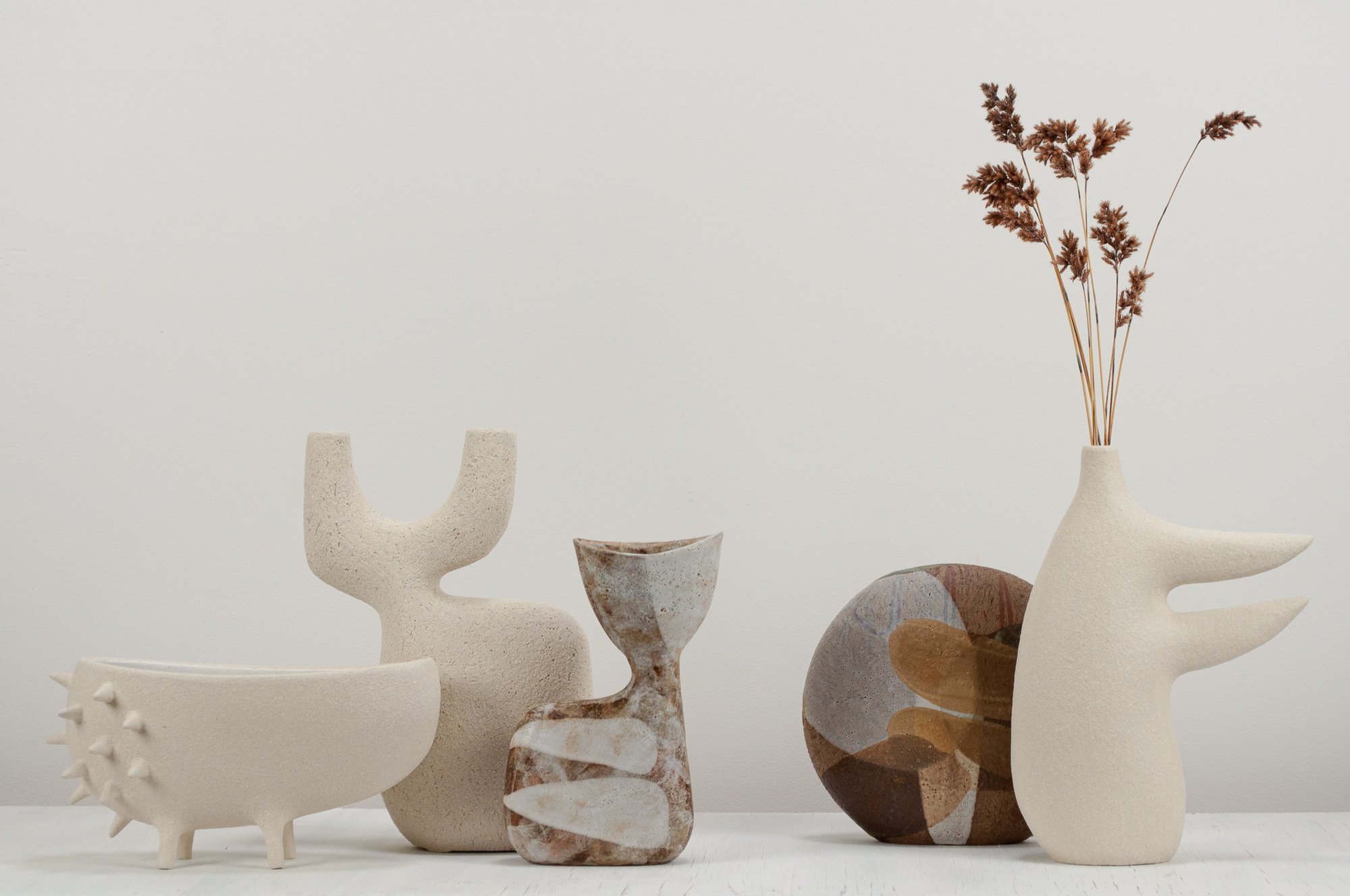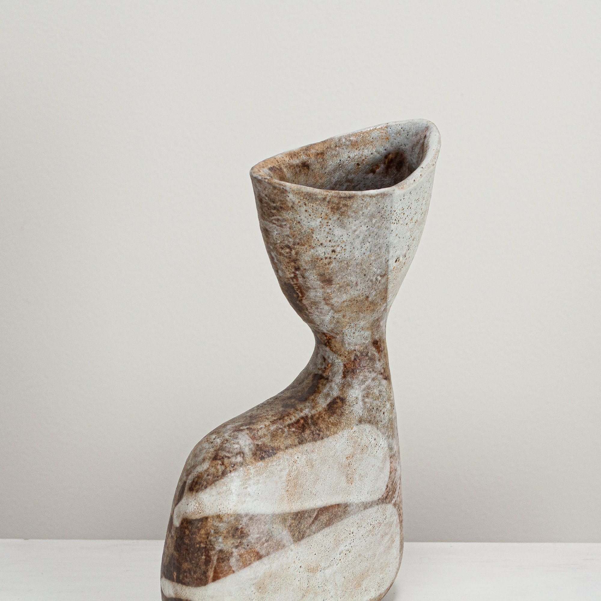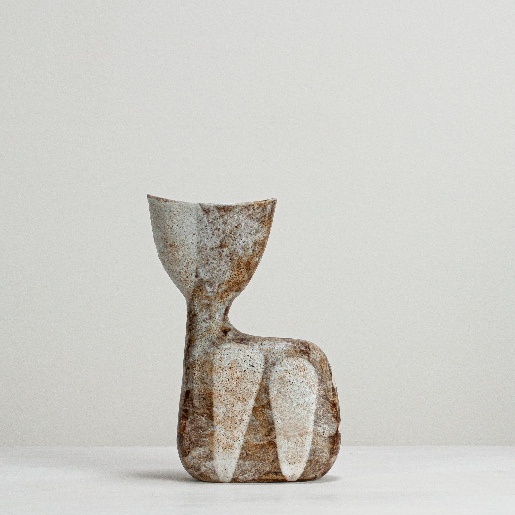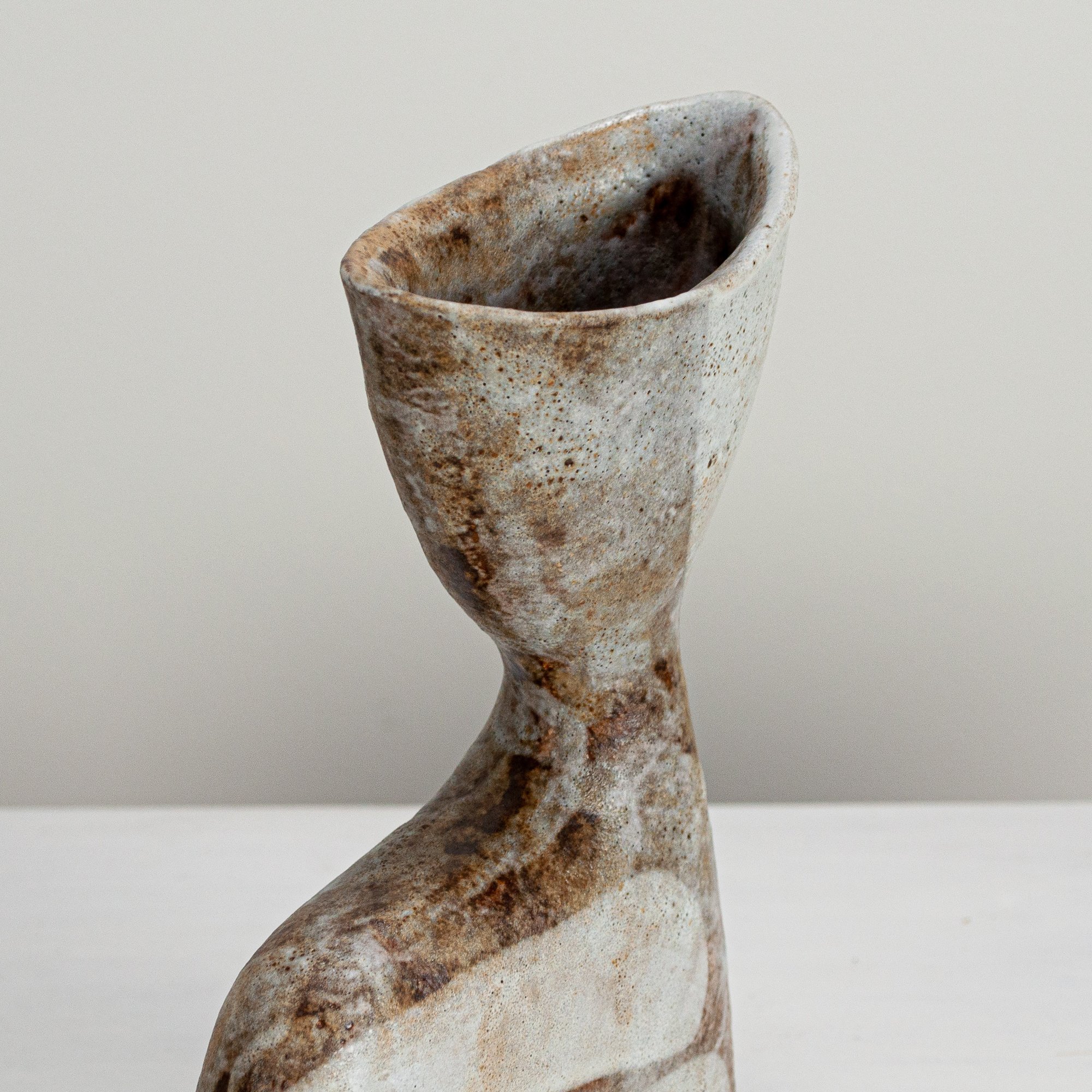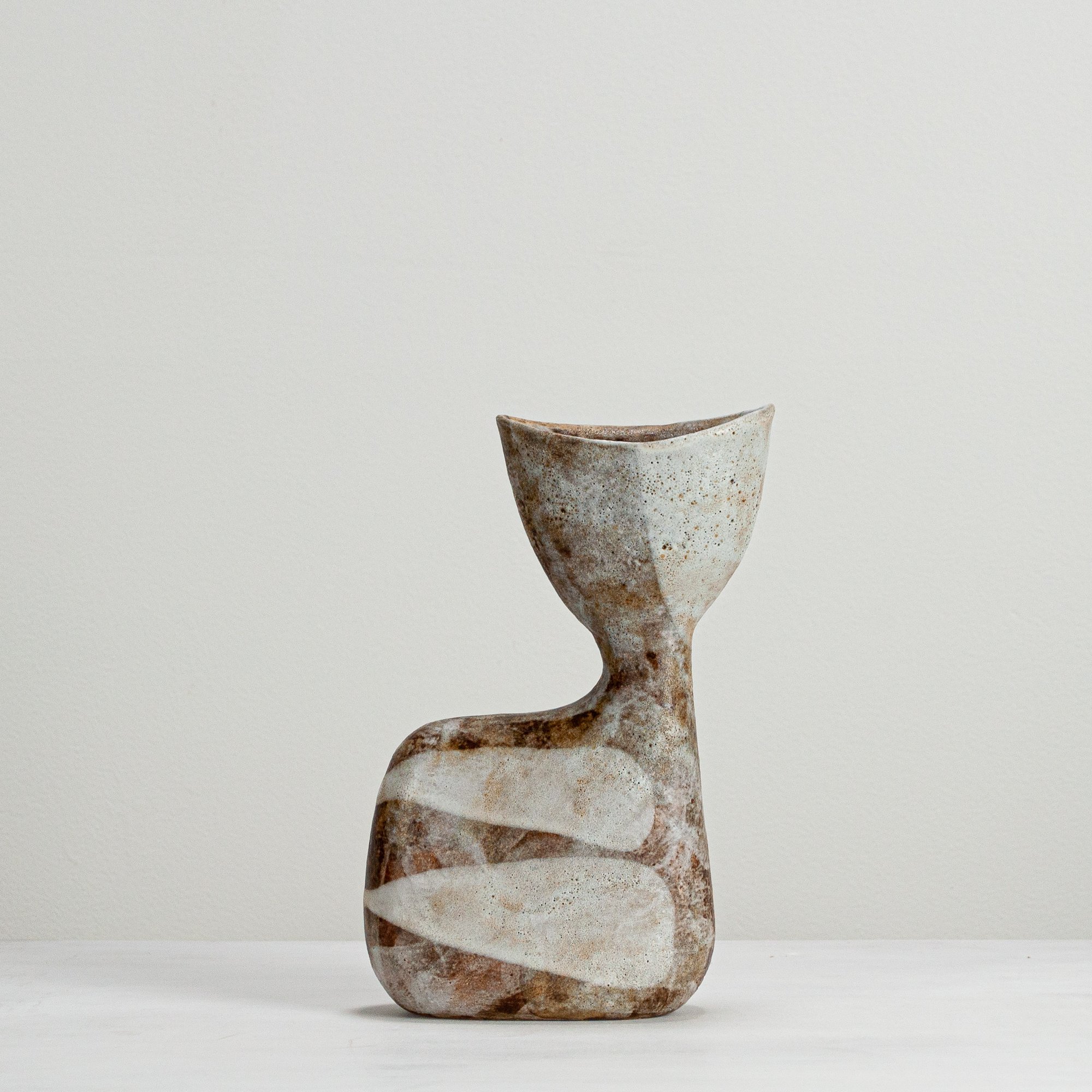 Stoneware sculptural vessel with a satin matte glaze. Suitable for use as a vase.