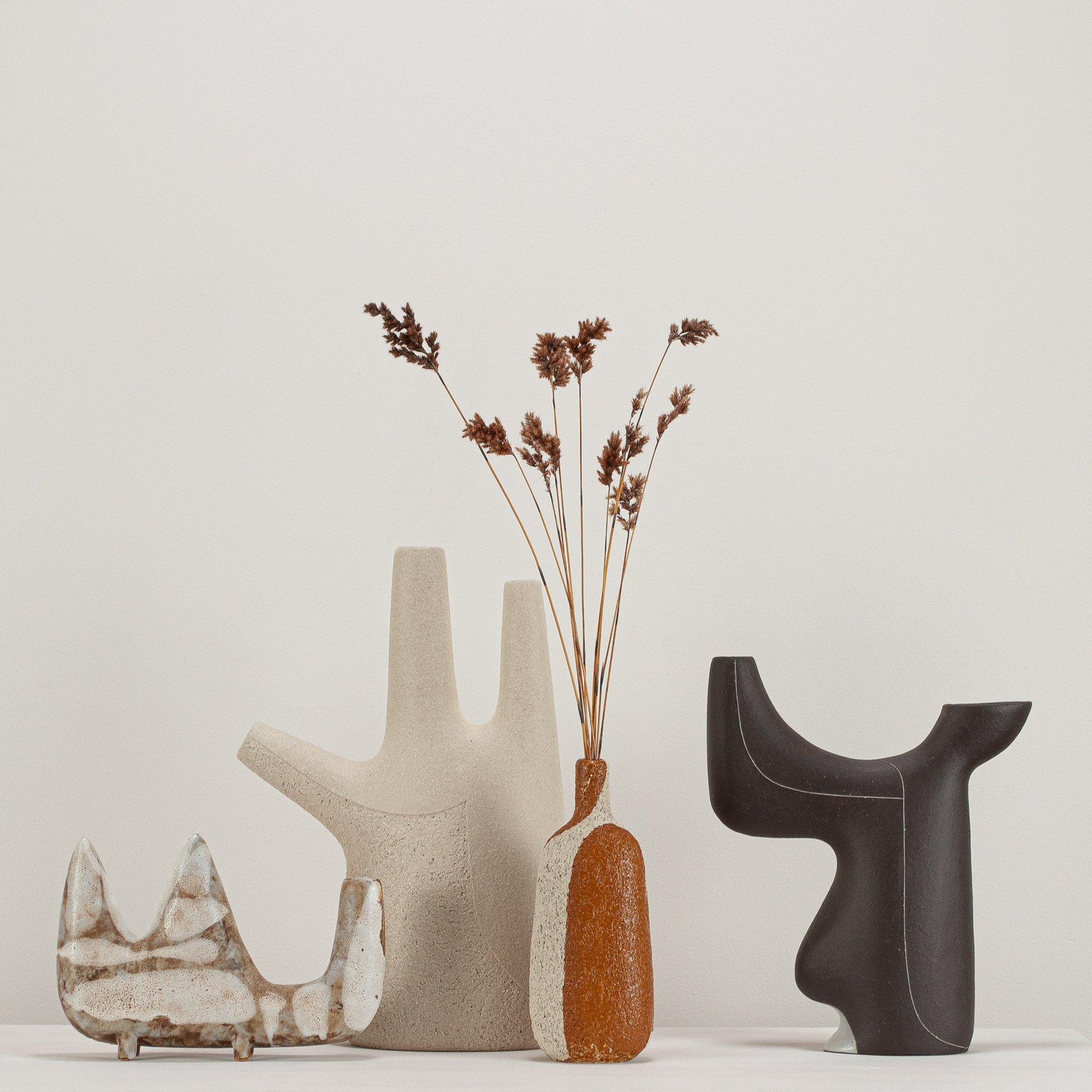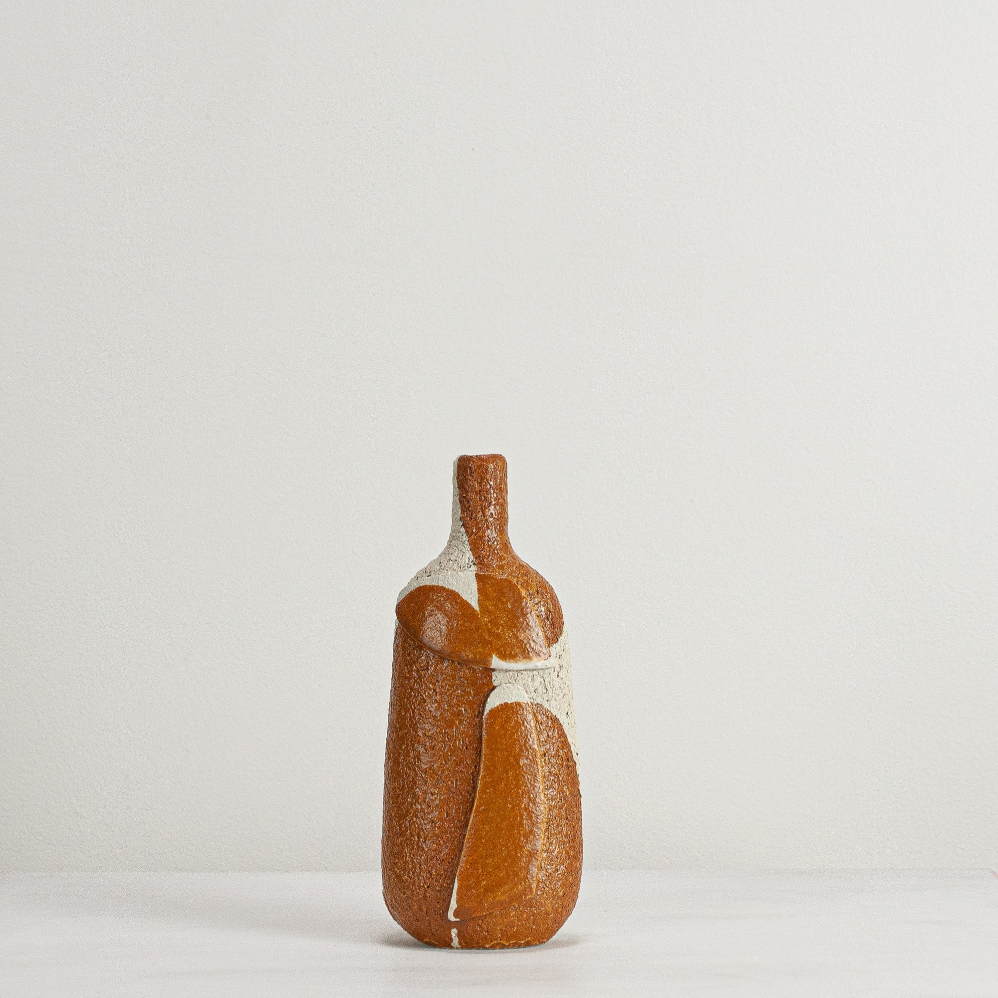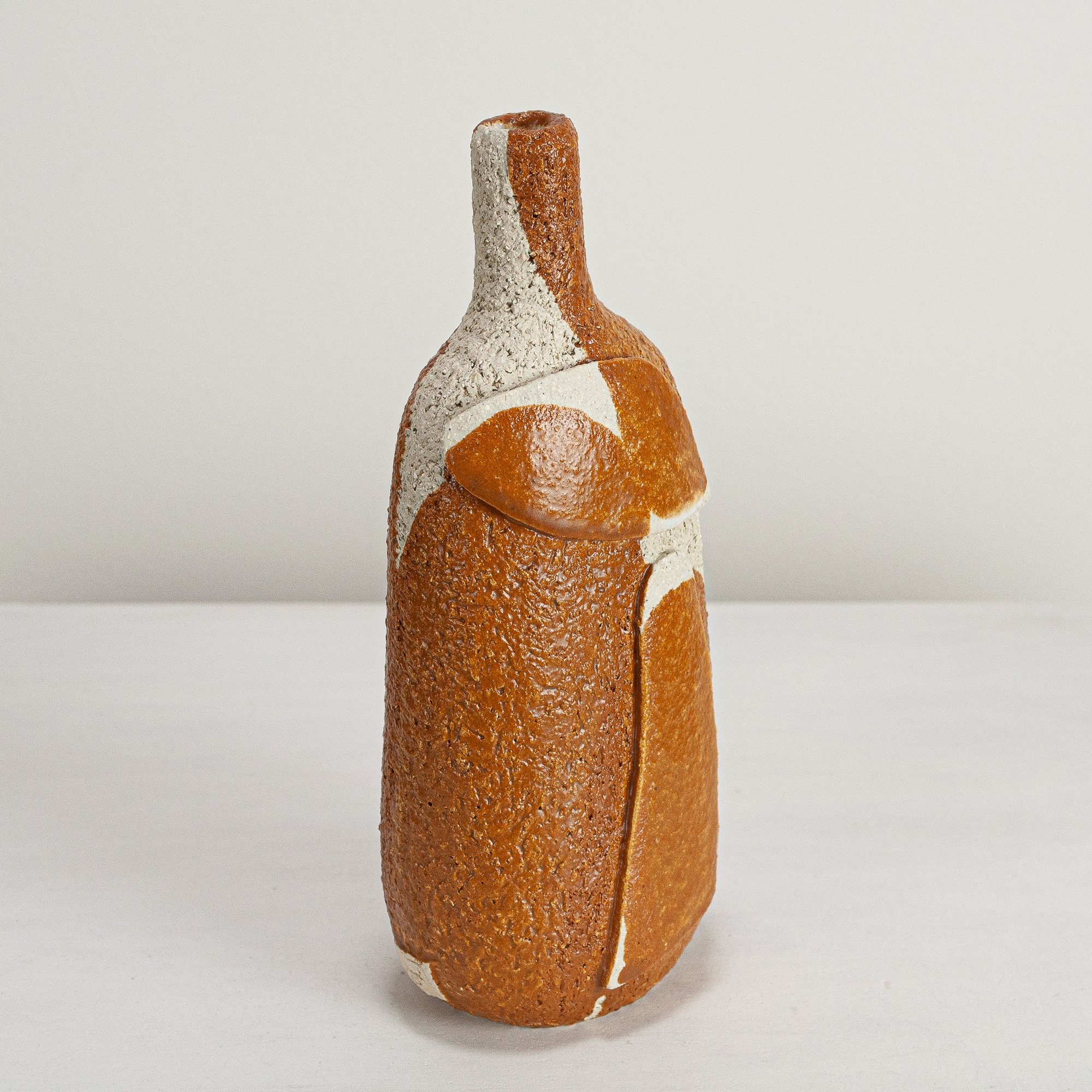Stoneware sculptural vessel with a satin matte glaze. Suitable for use as a vase.