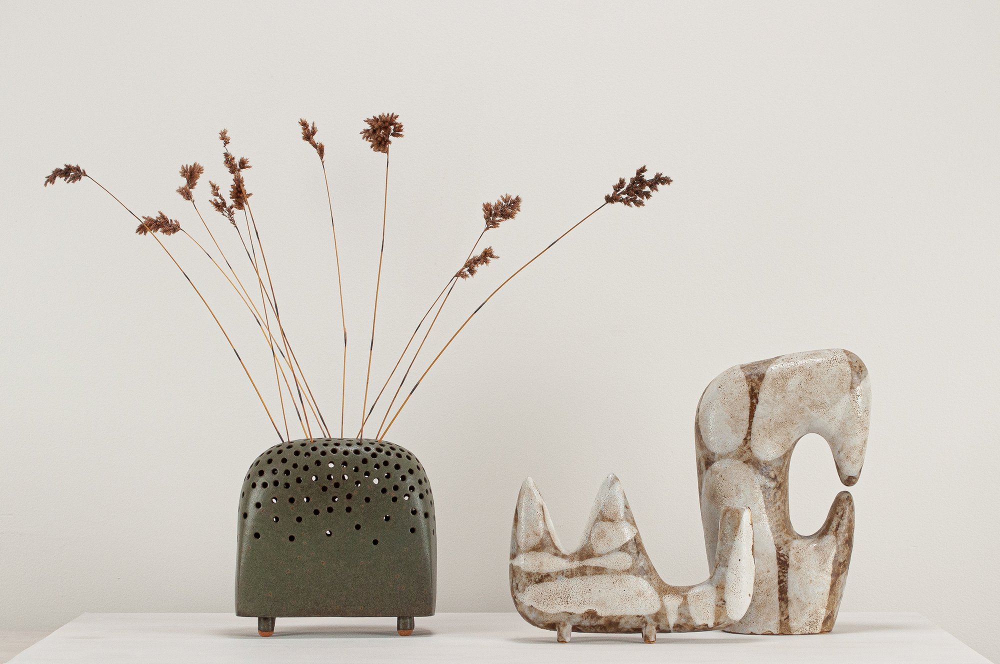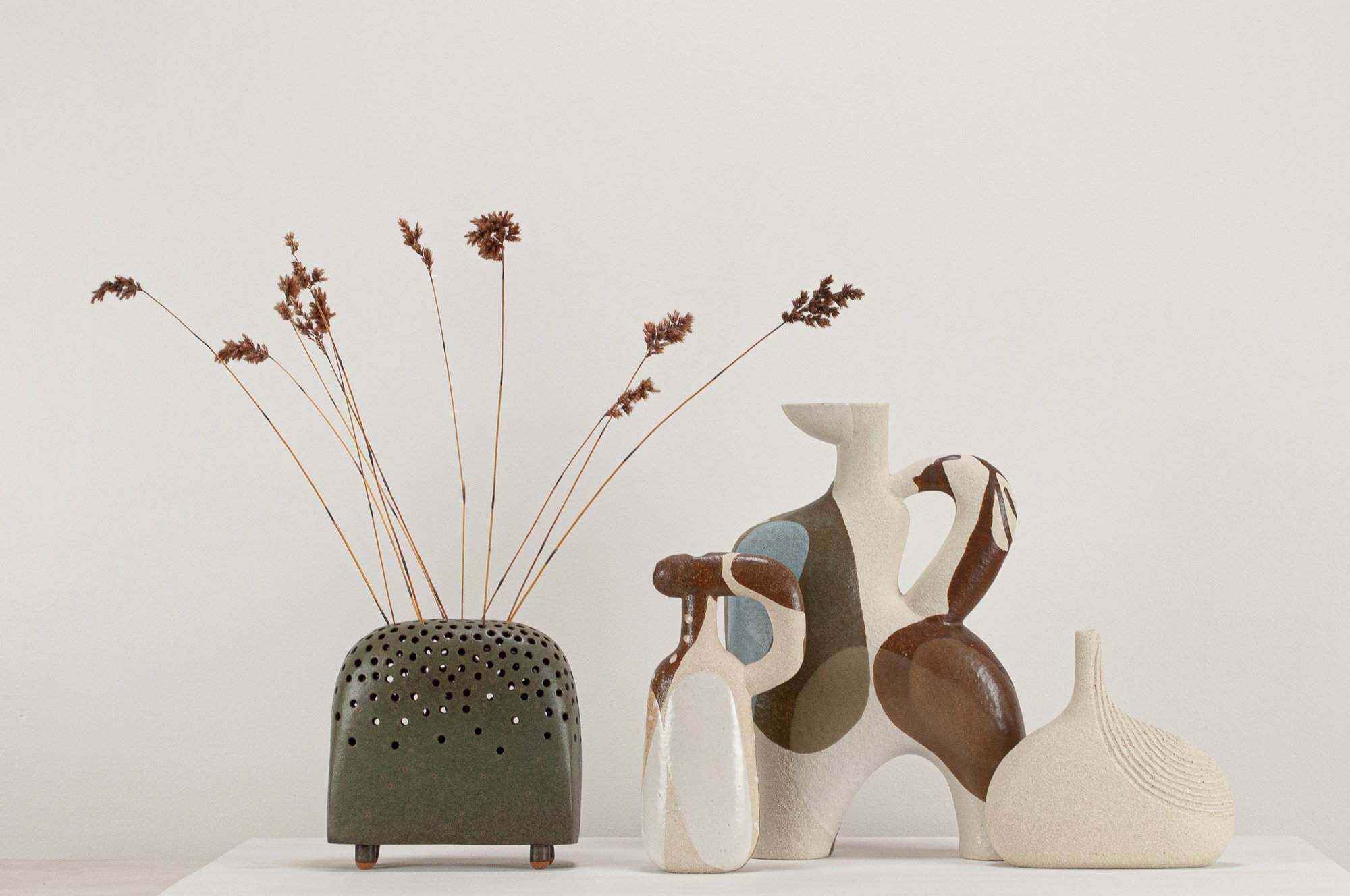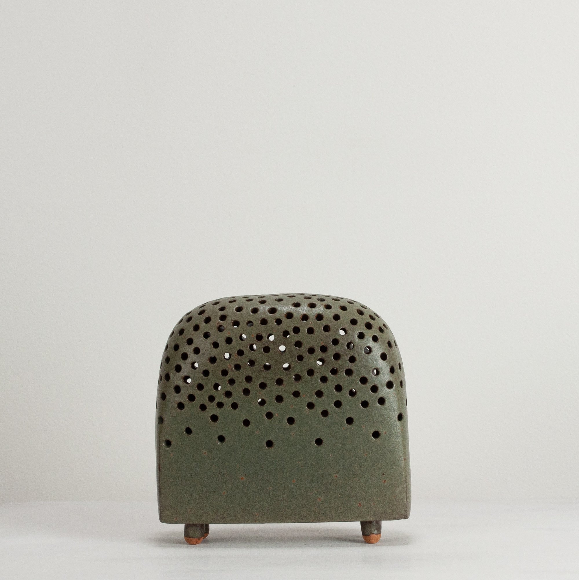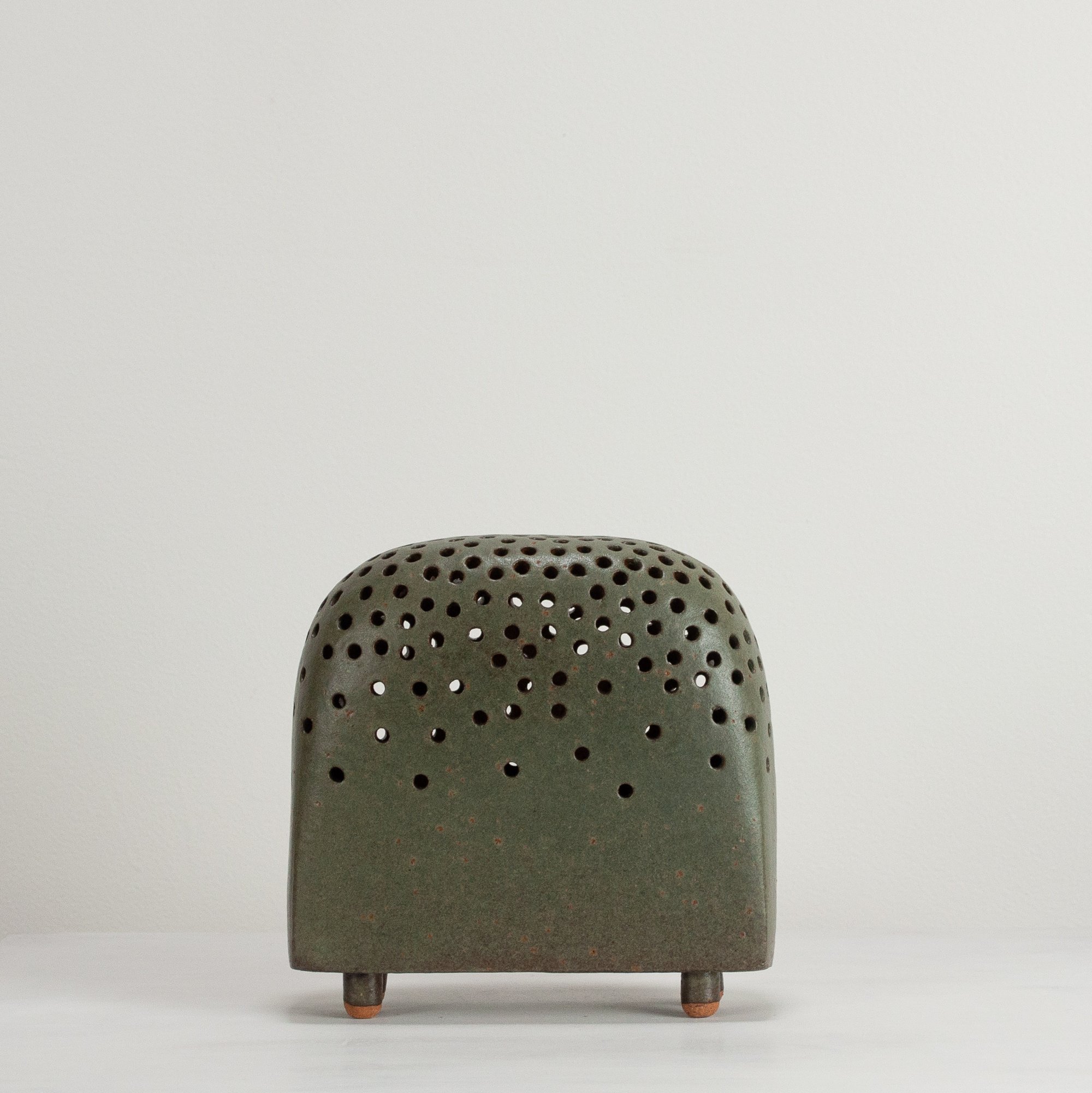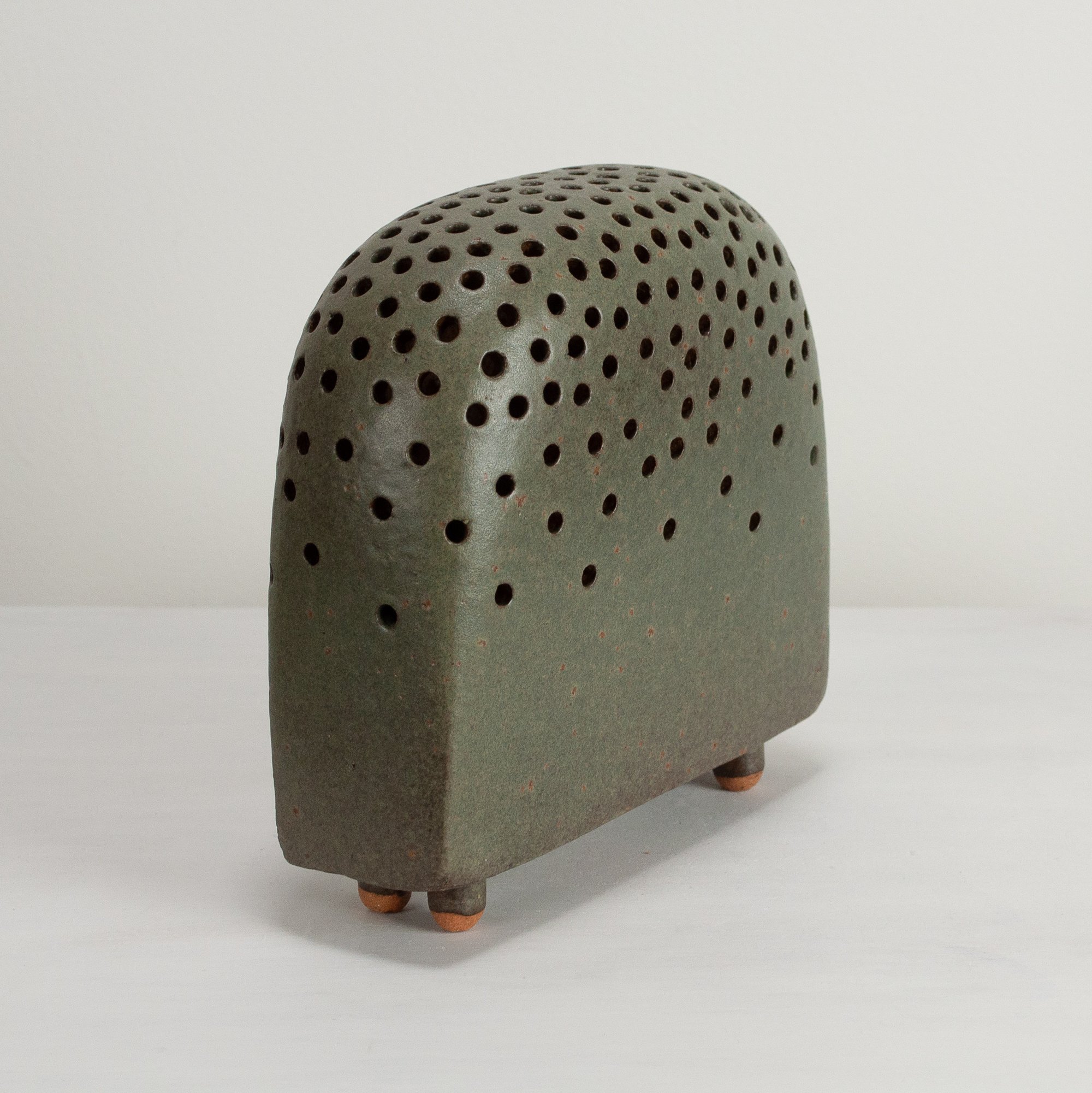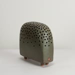 Stoneware sculptural vessel Jungle a dark green stoney matt glaze. Suitable for use as a vase.