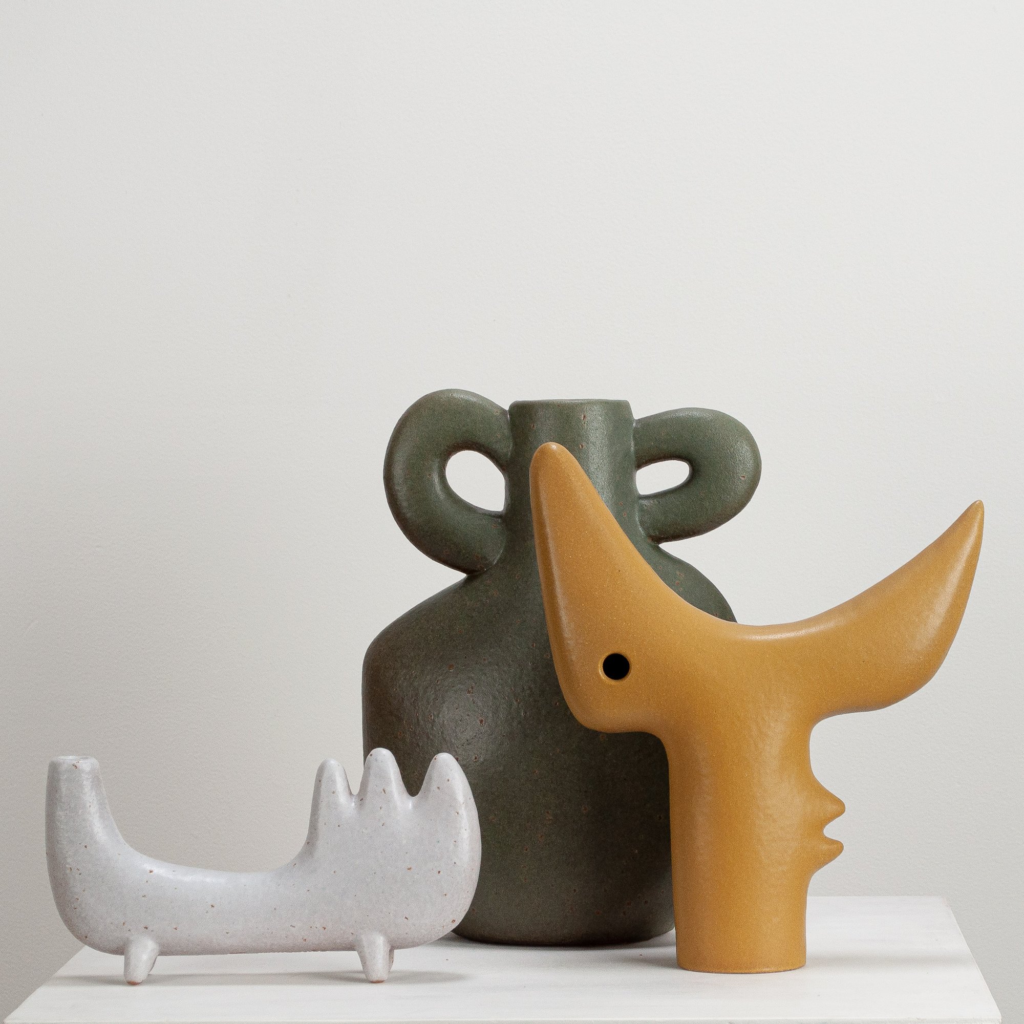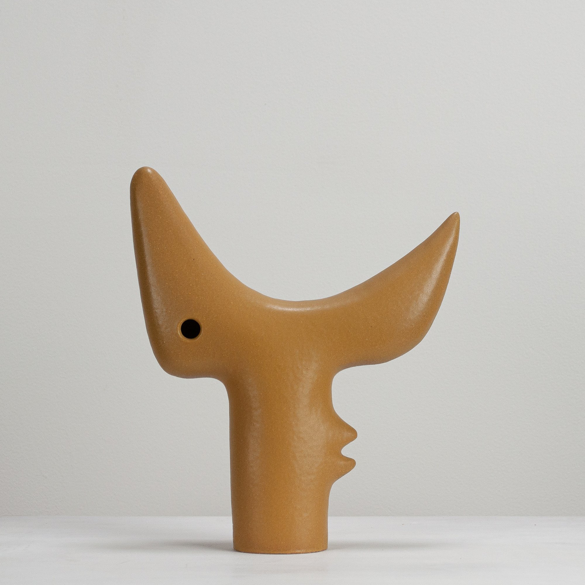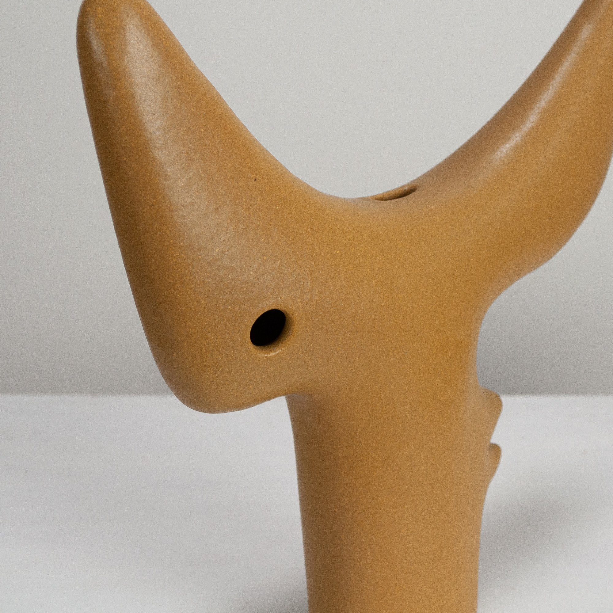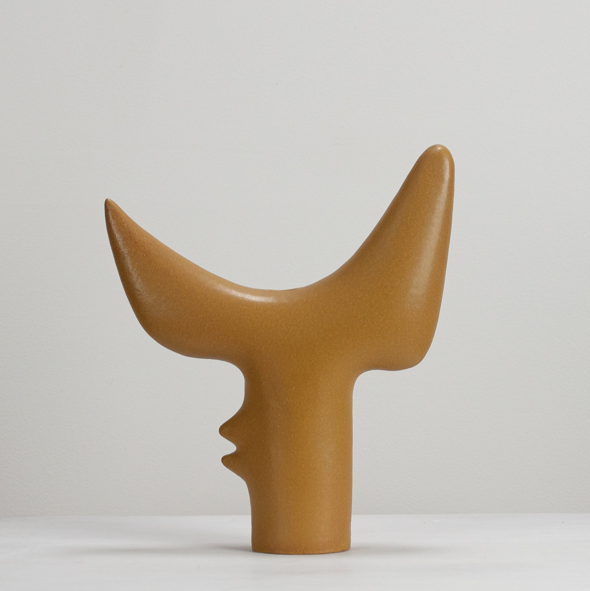 Stoneware sculptural vessel in a satin matt glaze. Suitable for use as a vase.