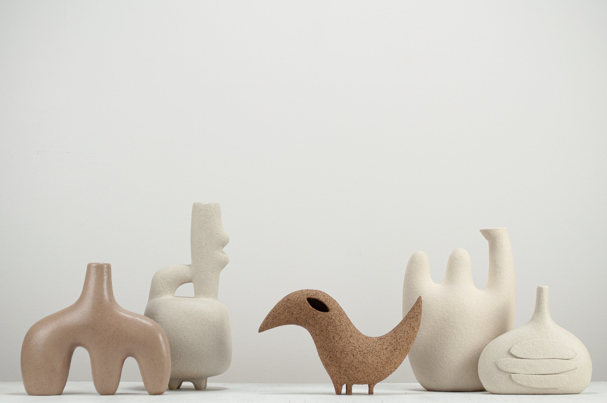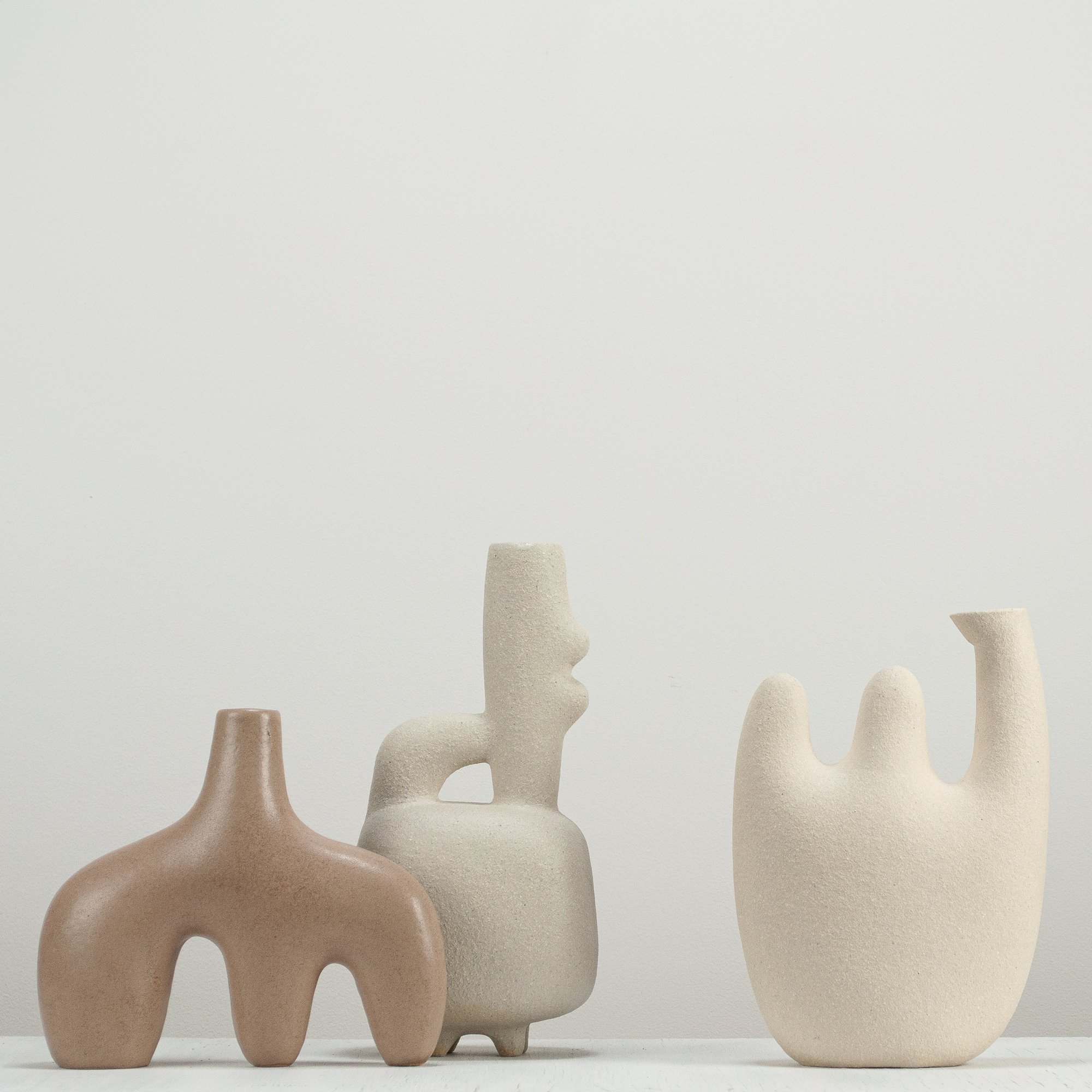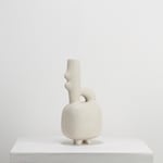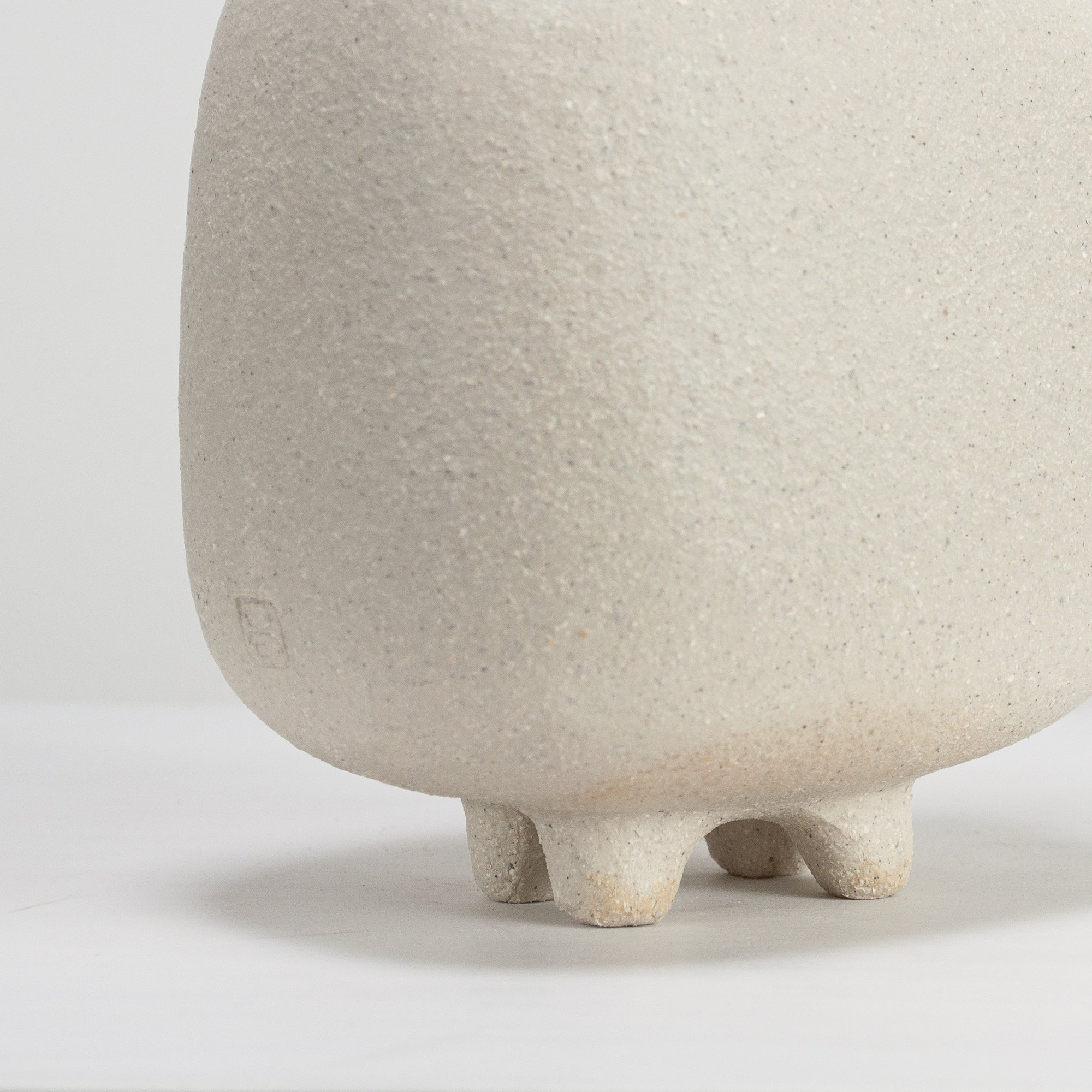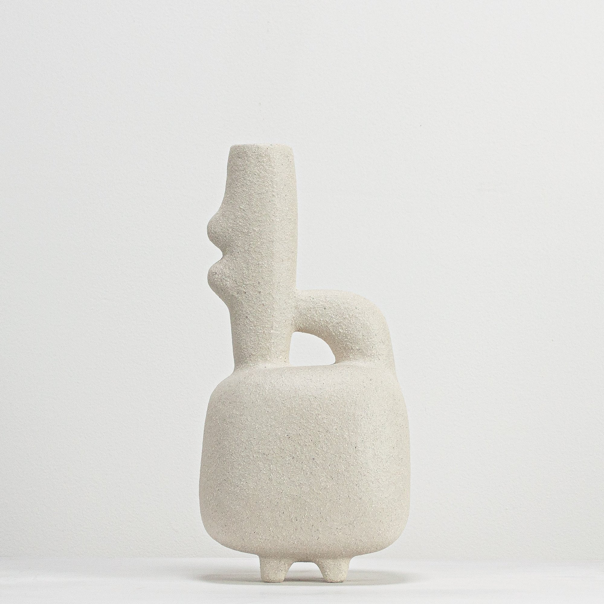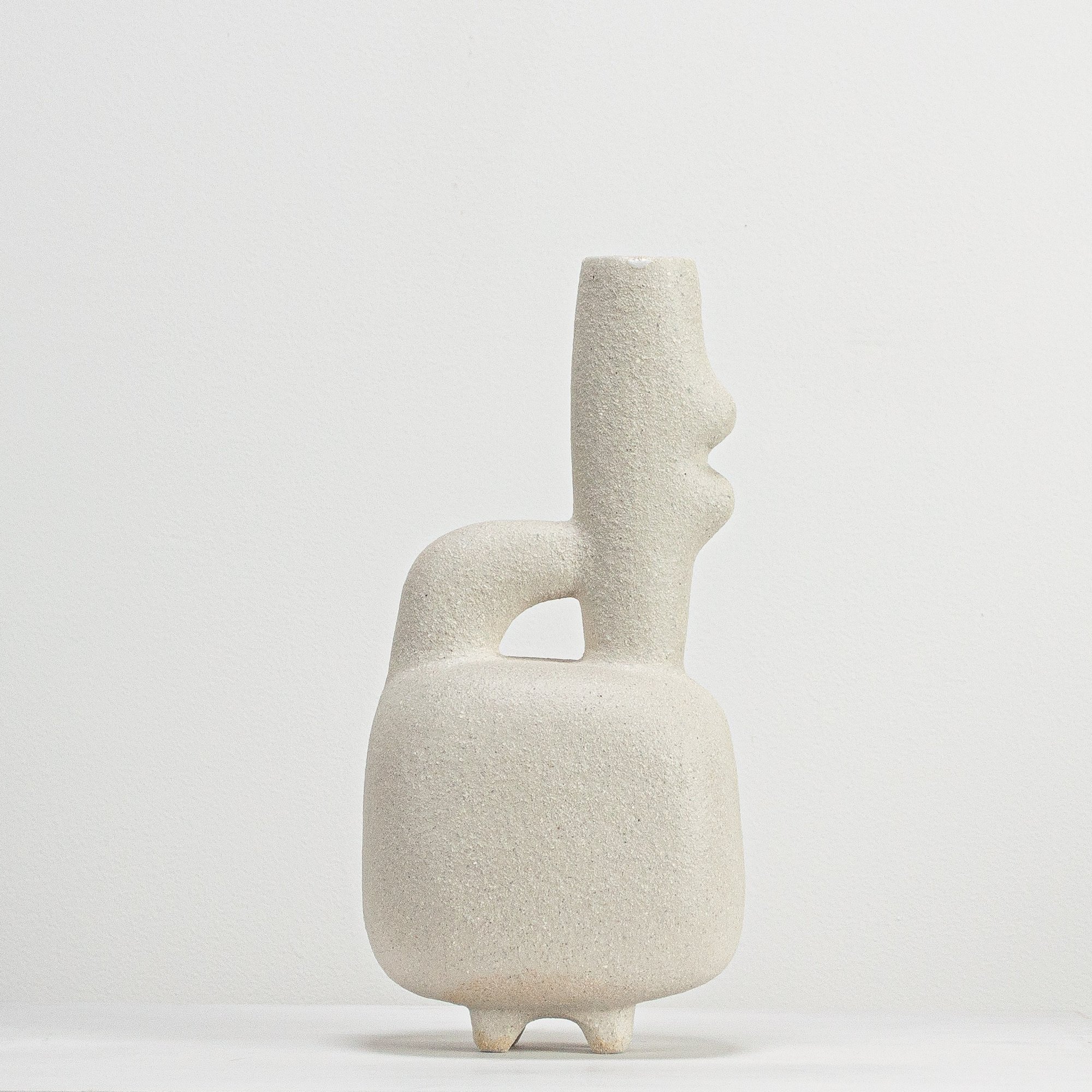 Unglazed stoneware sculptural vessel with a warm white, stoney finish. Sculptural vessel, suitable as a vase.