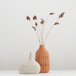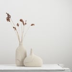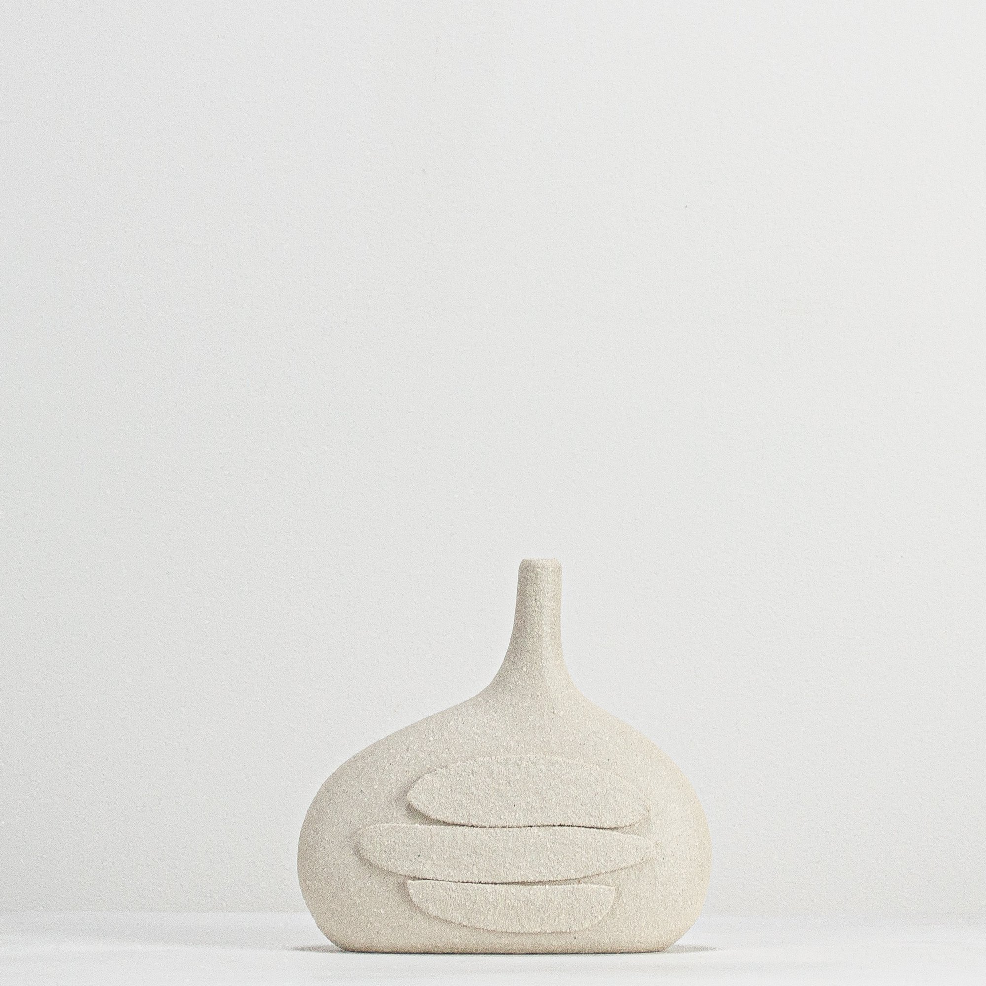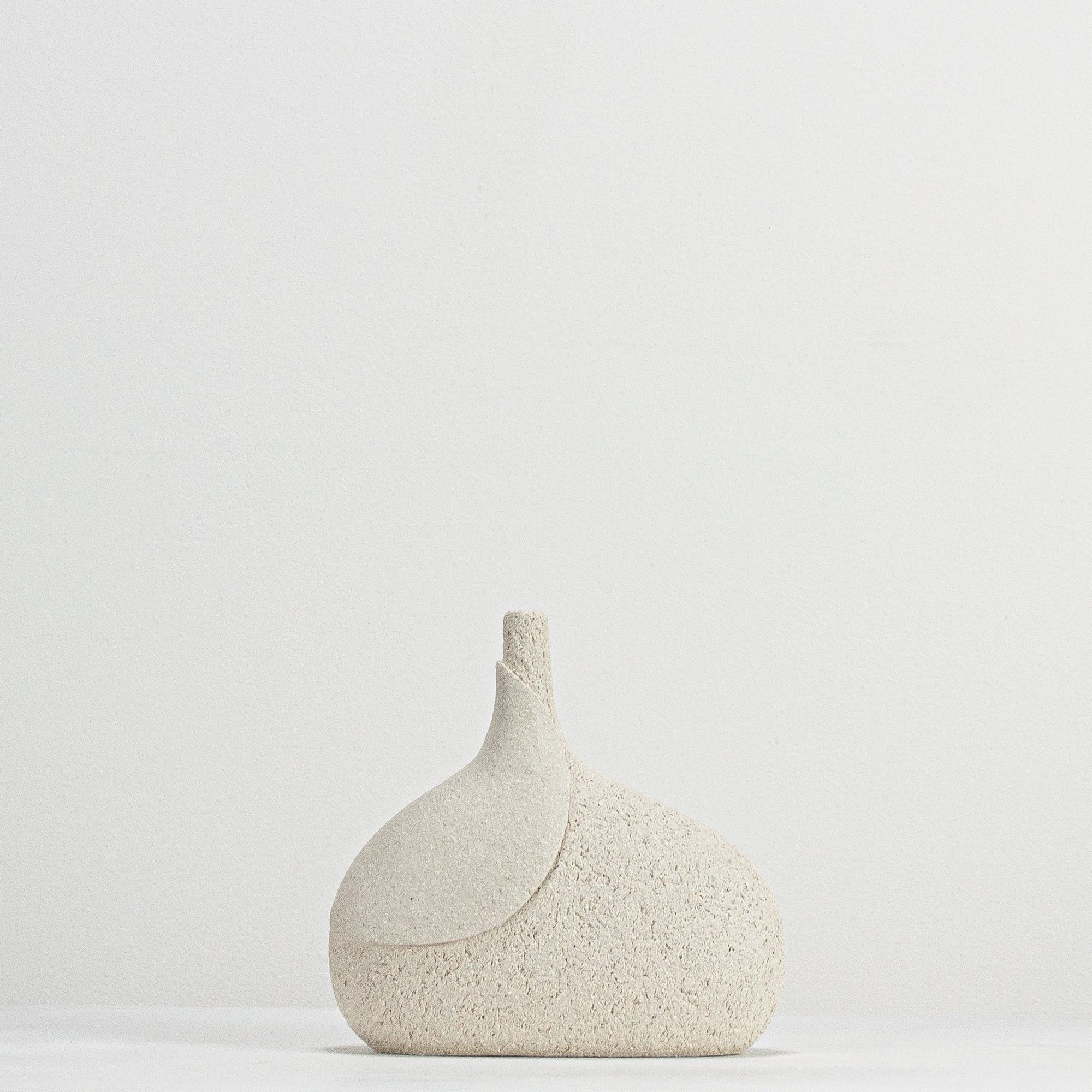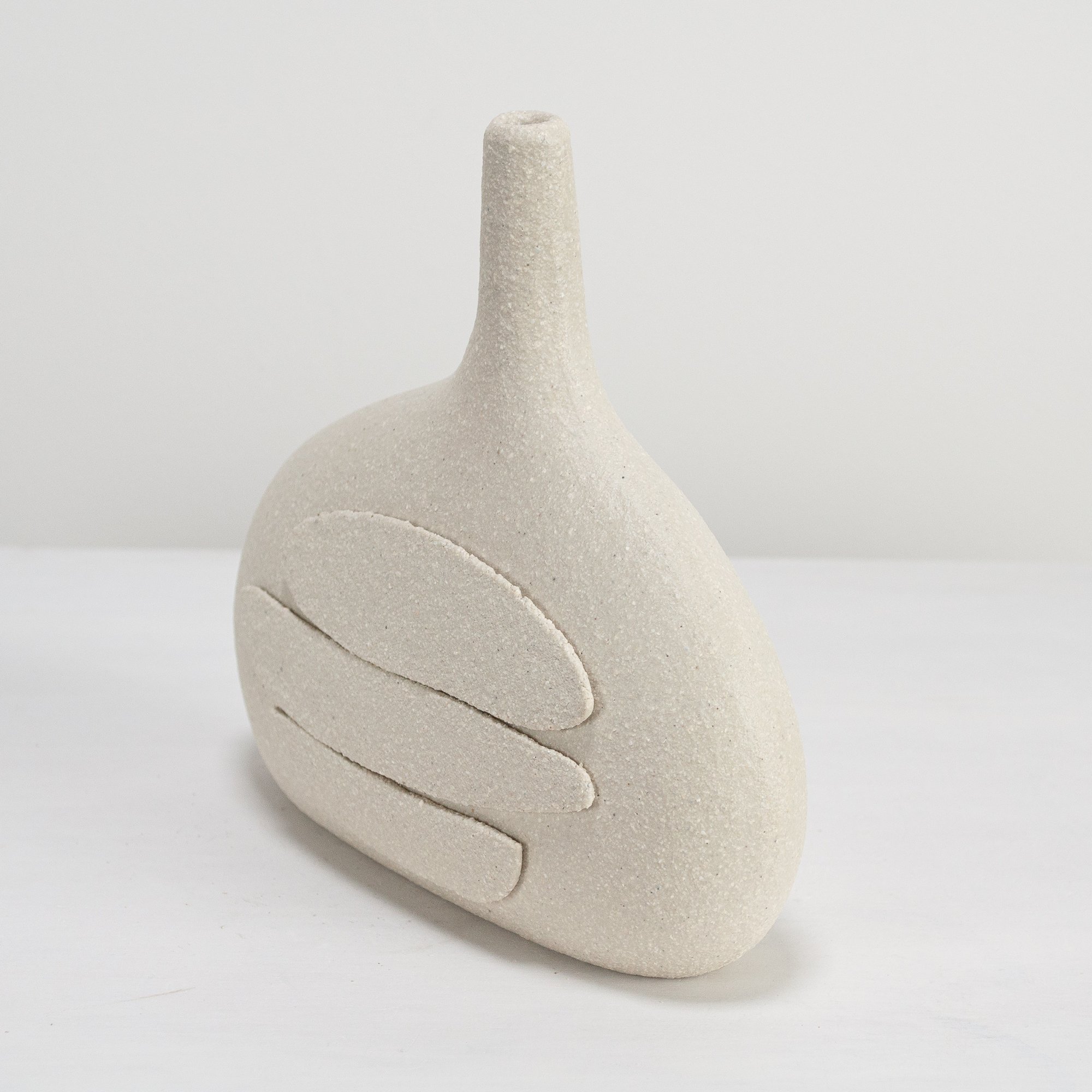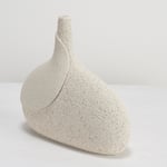 Unglazed stoneware sculptural vessel with a warm white, stoney finish. Sculptural vessel, suitable as a vase.